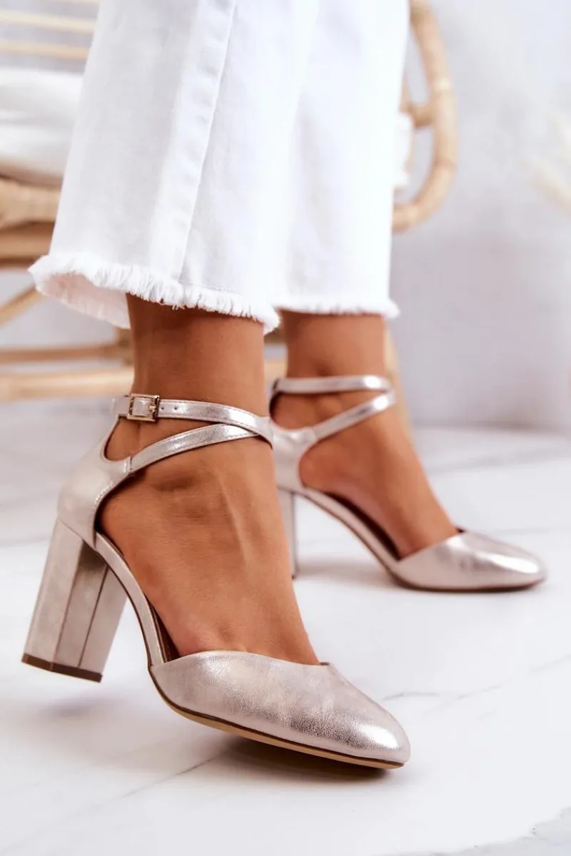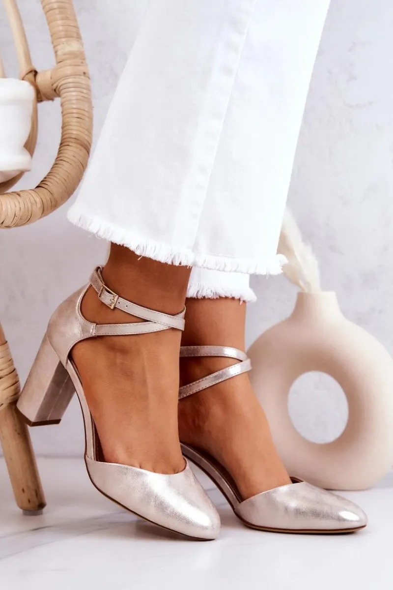 Cudowne czółenka wykonane z eko skóry. Zapięcie na sprzączkę z regulowanym paskiem. Miękka wkładka z naturalnej skóry znacząco zwiększa komfort noszenia. Osadzone na obcasie w postaci słupka. Nosek w kształcie migdała. Czółenka pokochają miłośniczki klasycznych modeli, które świetnie podkreślą wiele stylizacji! Przy wyborze rozmiaru prosimy kierować się tabelą rozmiarów