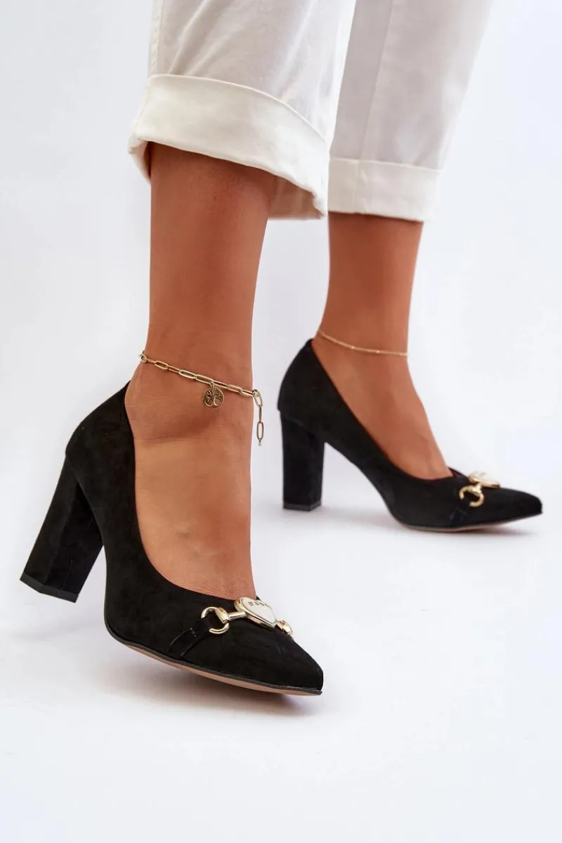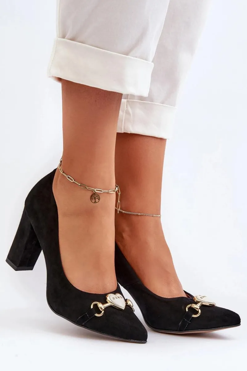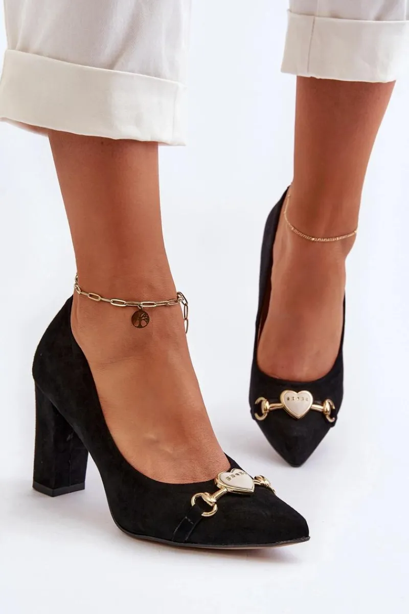Czółenka Na Słupku|Czółenka Klasyczne>Zazoo 2453/OS Zamszowe Czółenka Na Słupku Z Sercem Czarne Czarny