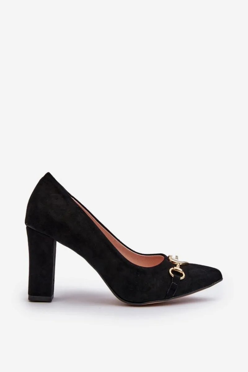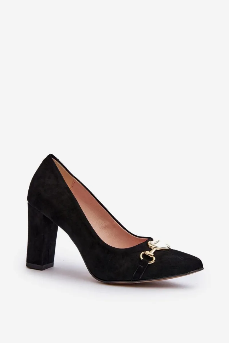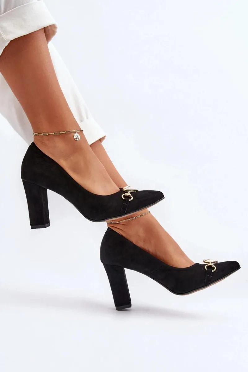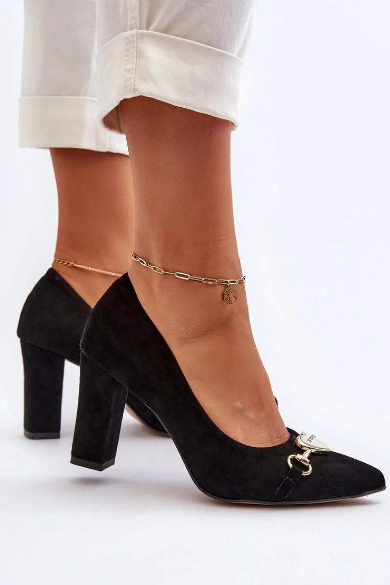 Czółenka Na Słupku|Czółenka Klasyczne>Zazoo 2453/OS Zamszowe Czółenka Na Słupku Z Sercem Czarne Czarny