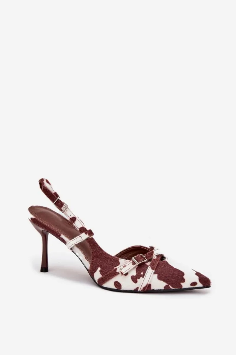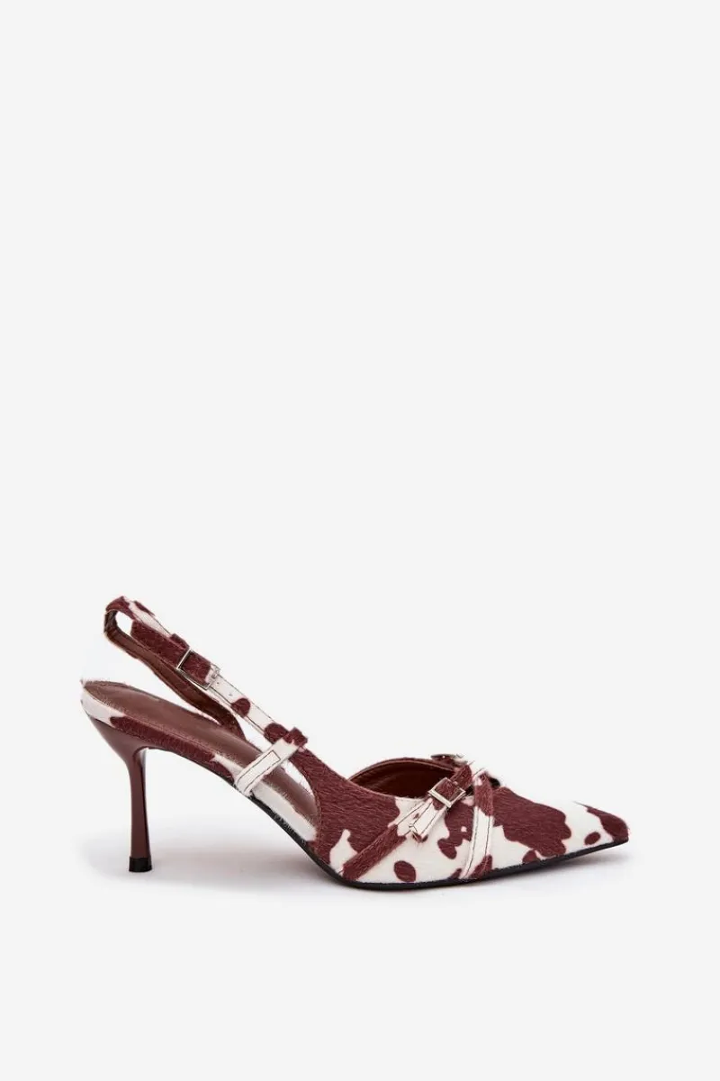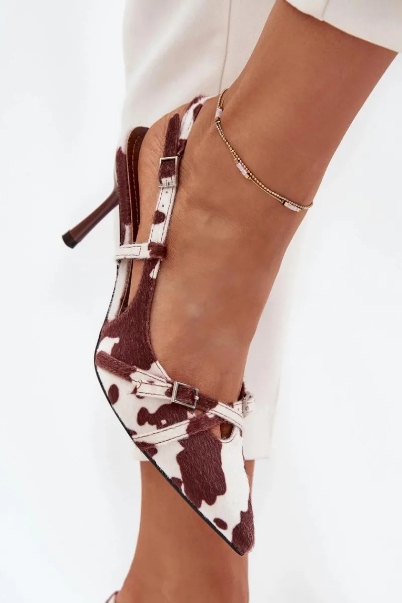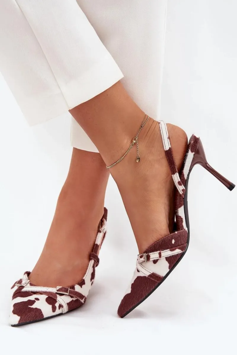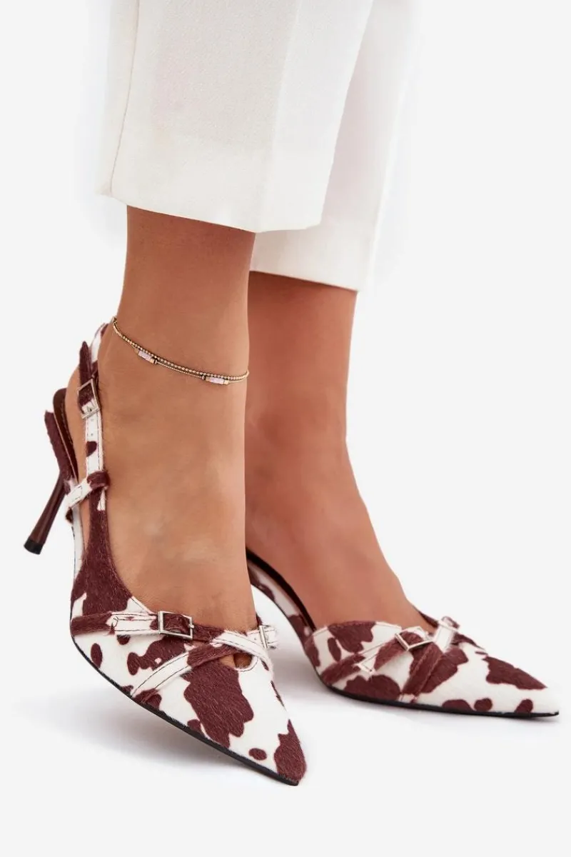 Czółenka damskie z odkrytą piętą, osadzone na szpilce, to doskonała propozycja na wyjątkowe okazje. Z przodu znajdują się dwa przeplatające się paseczki ozdobione małymi klamrami, które dodają im subtelnego uroku. Szpiczaste noski wydłużają nogi, nadając sylwetce smukłości i elegancji. Idealne na wieczorne wyjścia, wesela czy inne uroczystości. Przy wyborze rozmiaru prosimy kierować się tabelą rozmiarów