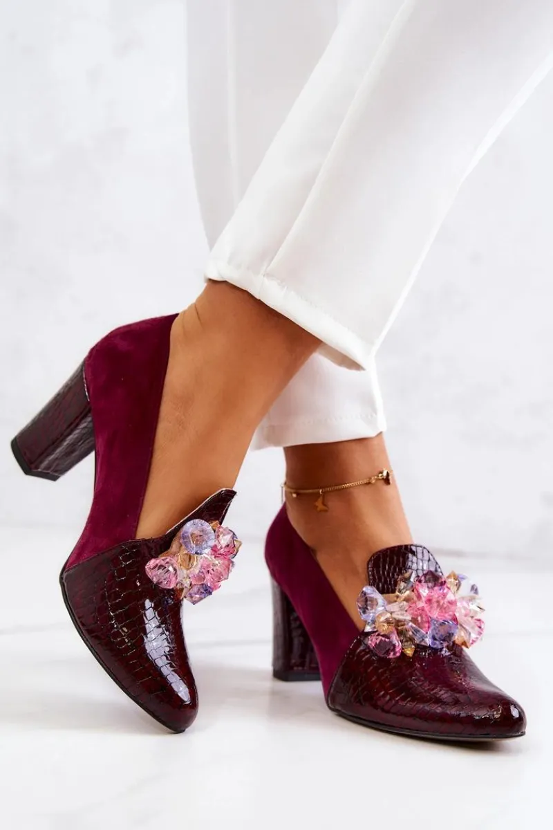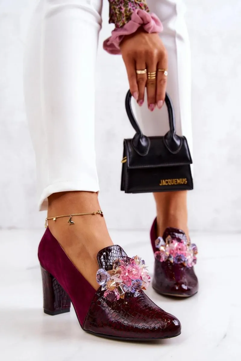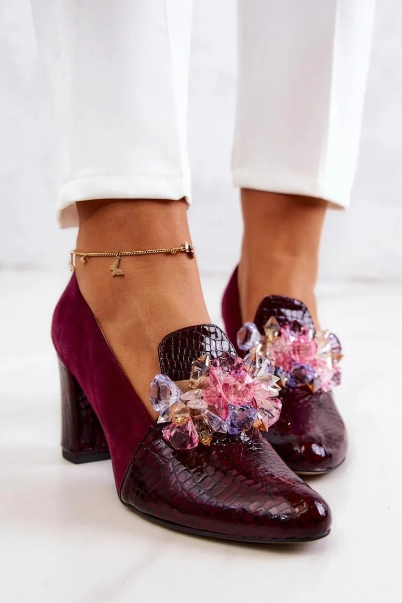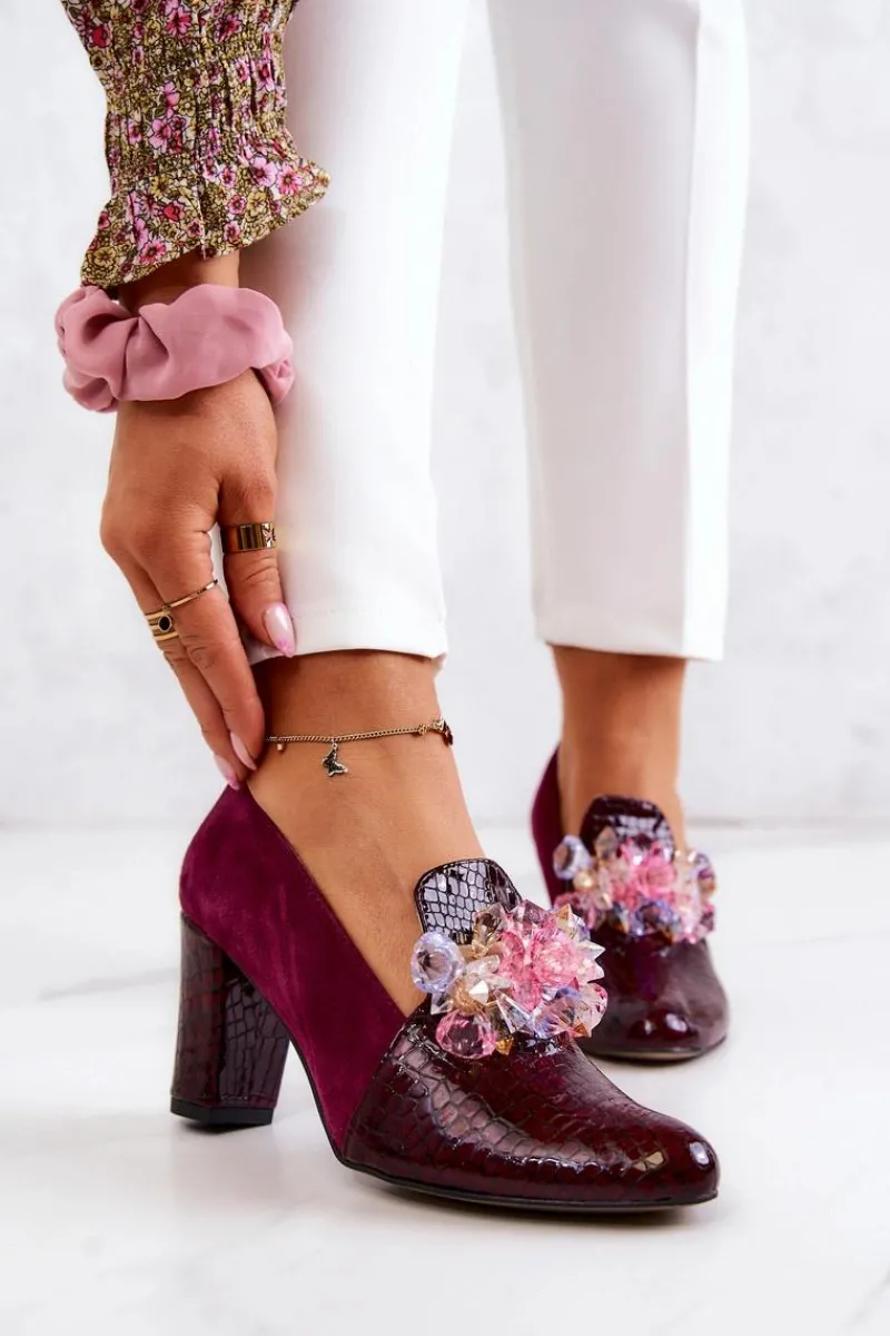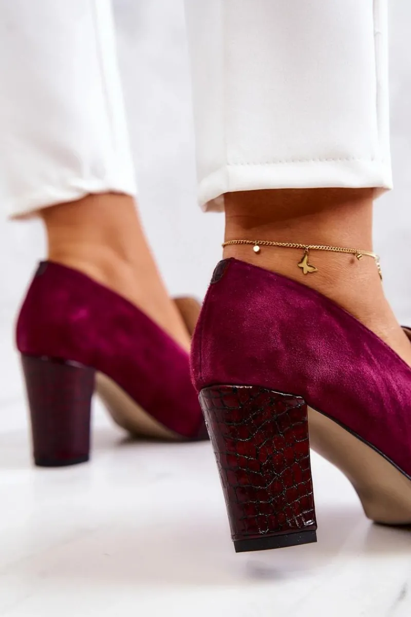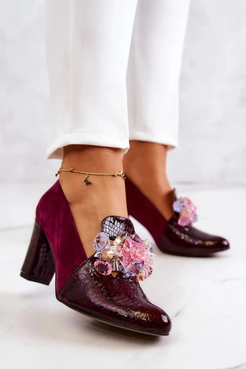 Czółenka Zamszowe|Czółenka Klasyczne>Boto Zamszowe Wężowe Czółenka Z Ozdobą Bordowe Mallory