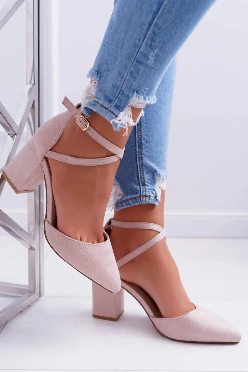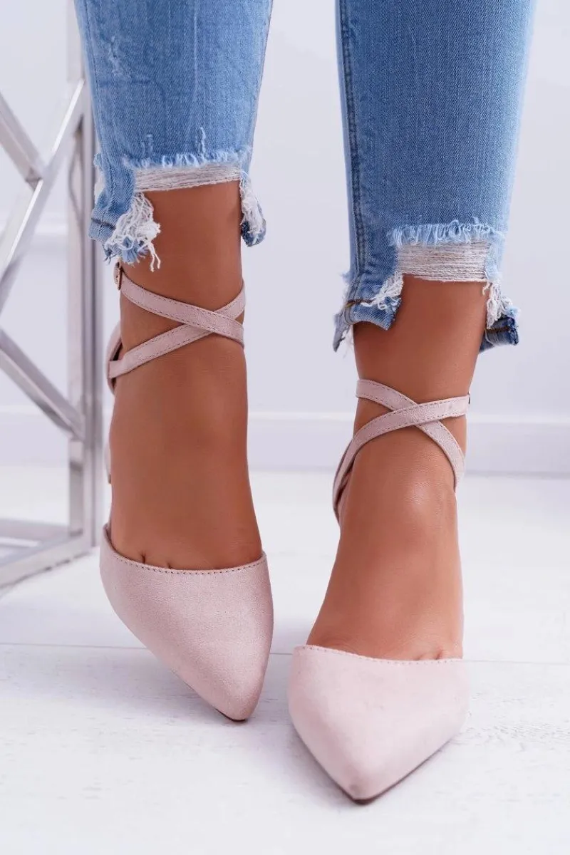 Czółenka Zamszowe|Czółenka Na Słupku>Boto Czółenka Damskie Na Słupku W Szpic Beżowe Cosmo