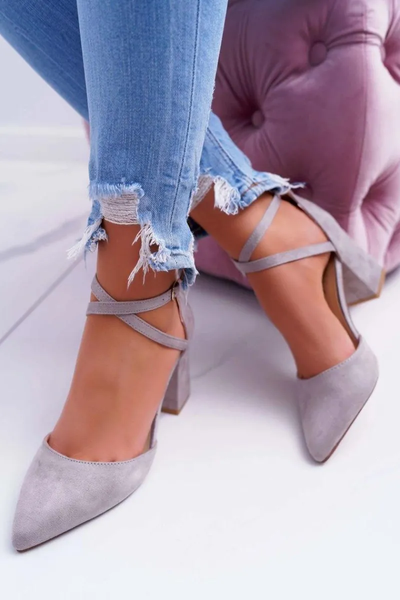 Czółenka Zamszowe|Czółenka Na Słupku>Boto Czółenka Damskie Na Słupku W Szpic Szare Traffic