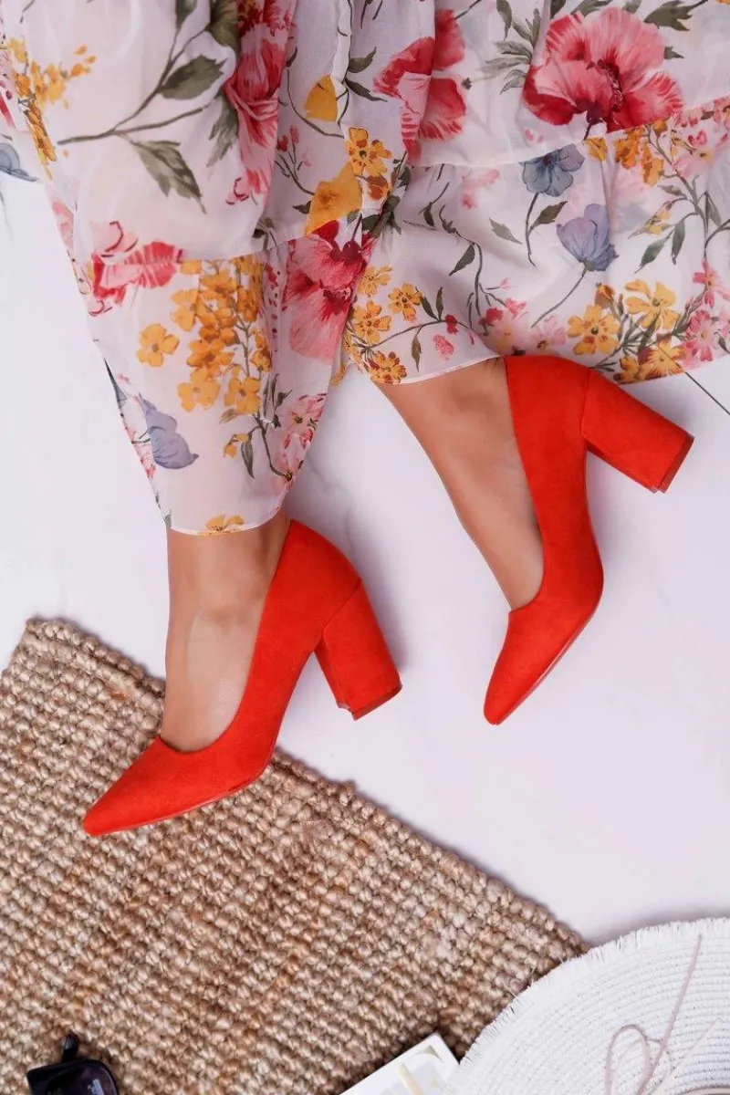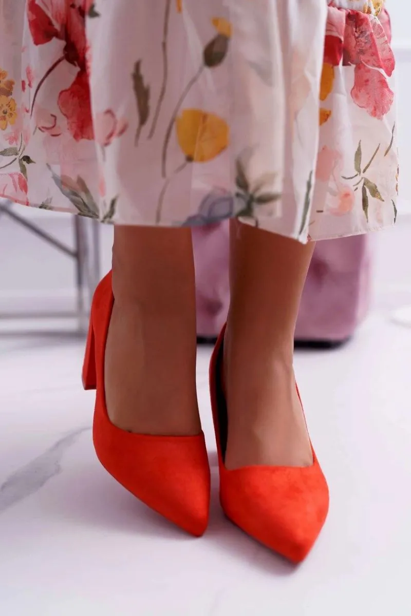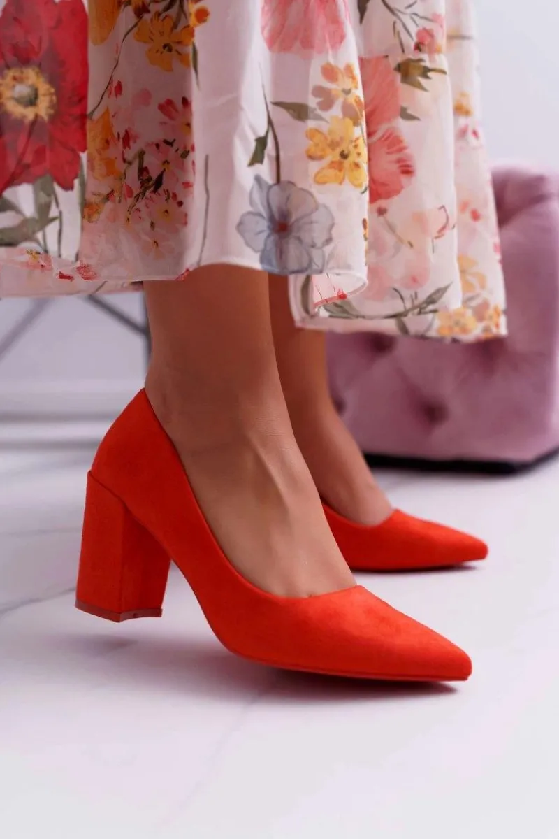 Czółenka Zamszowe|Czółenka Na Słupku>Boto Czółenka Damskie Na Słupku Zamszowe Pomarańczowe Neshka