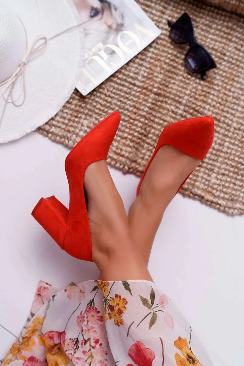 Jeśli szukasz odpowiedniego obuwia na przyjęcia bądź biznesowe spotkania, to trafiłaś idealnie! Nasza propozycja zamszowych czółenek świetnie sprawdzi się w każdej sytuacji a stabilny słupek, uniesie Twą sylwetkę. O nasz komfort zadba delikatna wkładka, więc nie musisz się już martwić o bolące stopy. Dostępne w kilku kolorach, dlatego z pewnością wybierzesz coś dla siebie. Przy wyborze rozmiaru prosimy kierować się tabelą rozmiarów