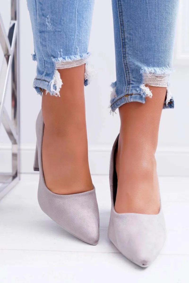 Czółenka Zamszowe|Czółenka Na Słupku>Boto Czółenka Damskie Na Słupku Zamszowe Szare Strawberry