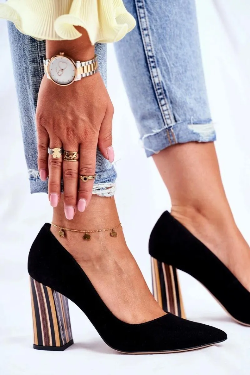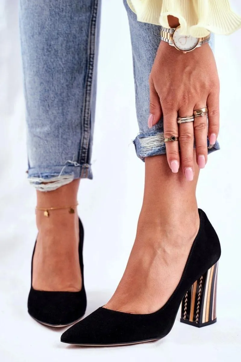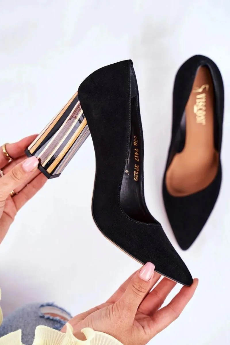 Najnowsza kolekcja czółenek od Visconi, które idealnie podkreślą każdą naszą stylizację! Fason o nosku w szpic! Oparte na stabilnym, średniej wysokości lakierowanym słupku. Wkładka wykonana ze skóry naturalnej zapewnią aksamitną lekkość i wygodę dla twojej stopy! Wierzch z naturalnego zamszu. Pięknie prezentują się na nodze. Przy wyborze rozmiaru prosimy sugerować się tabelą rozmiarów.