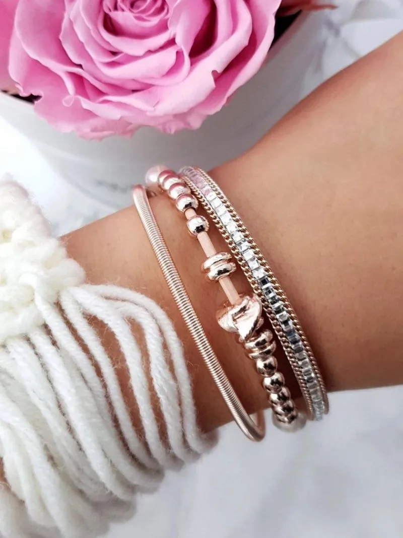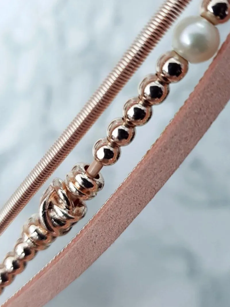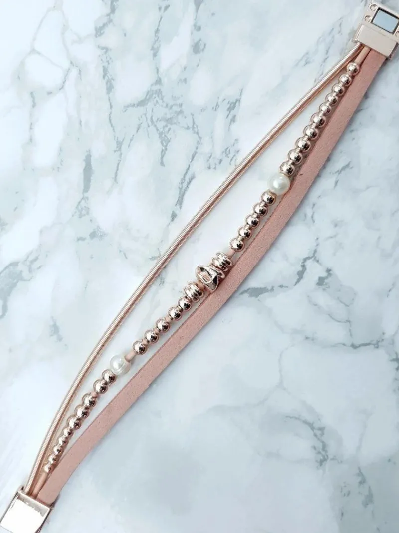 Damska Bransoleta Z Koralikami I Cyrkoniami Różowa Bella Bransoletki