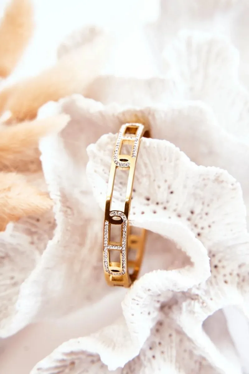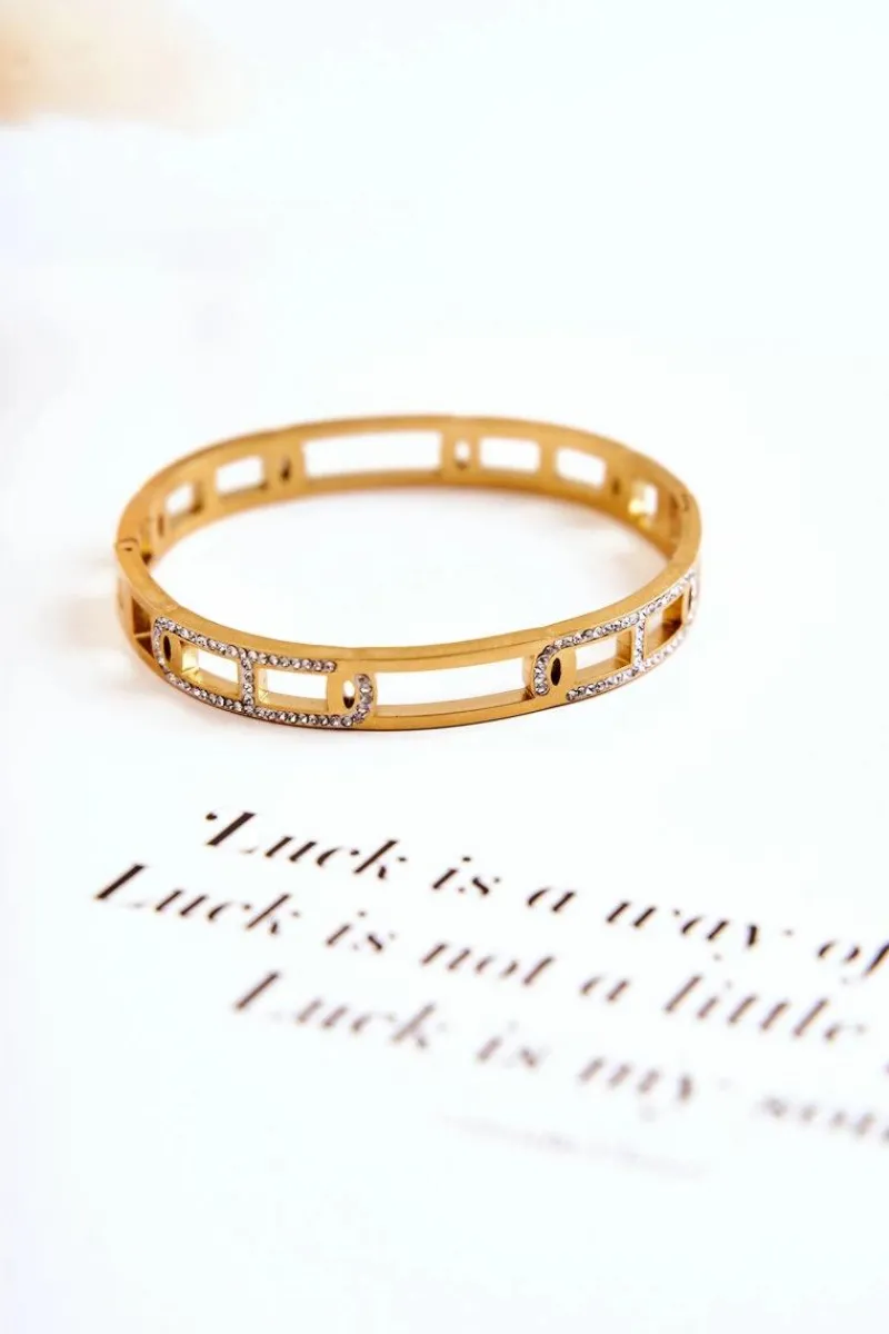 Cudowna bransoletka wykonana ze stali nierdzewnej w ozdobny wzór z wycięciami. Dodatkowo została przyozdobiona cyrkoniami. Posiada zamykanie w postaci zatrzasku. Idealna na wieczorowe okazje, ale także na co dzień. Takiej bransoletki nie powinno zabraknąć w Twoich akcesoriach! Koniecznie sprawdź także inne modele biżuterii dostępne w naszej ofercie!