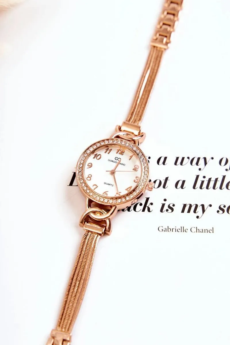 Damski Zegarek Analogowy Giorgio & Dario Z Cyrkoniami Różowe Złoto Zegarki
