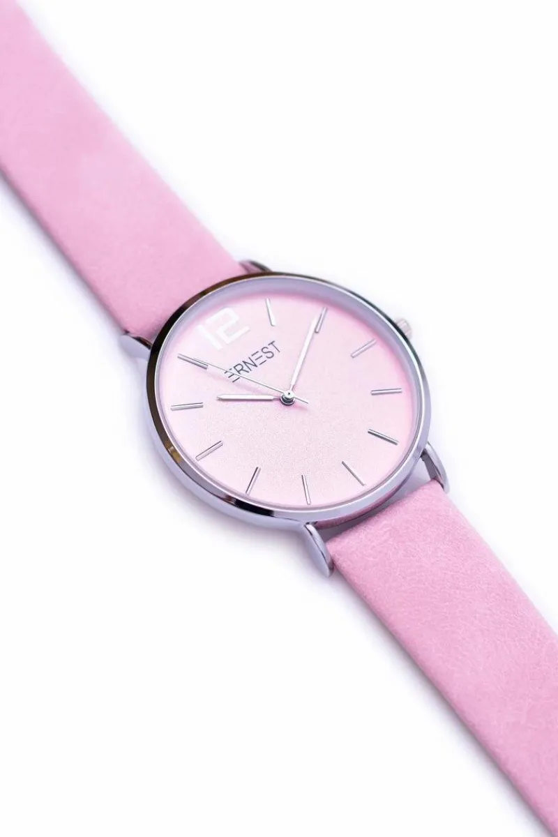 Damski zegarek Claire marki Ernest! Najnowszy model z piękną, szykowną kopertą oraz regulowanym paskiem, to idealny wybór dla eleganckich kobiet! Pasuje zarówno do codziennych stylizacji jak i tych bardziej eleganckich. Duża czytelna tarcza w kolorze paska. Nie czekaj dłużej, spraw sobie trochę elegancji w najwyższej jakości.