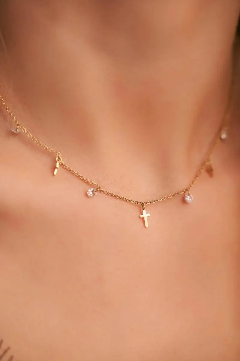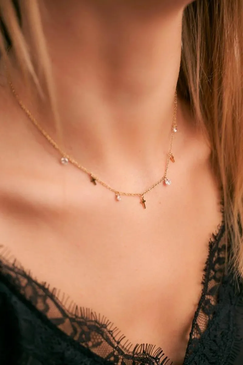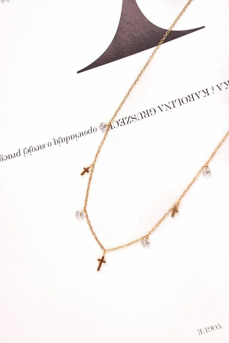 Damski Złoty Naszyjnik Łańcuszek Cyrkonie Krzyże Katie Naszyjniki