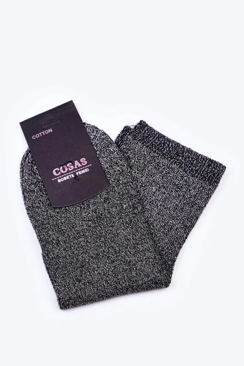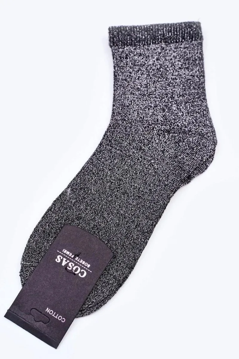 Miękkie, bawełniane skarpetki damskie przeszyte srebrną nitką. Skład: 95% bawełna, 5% spandex. Spraw prezent sobie lub komuś bliskiemu!