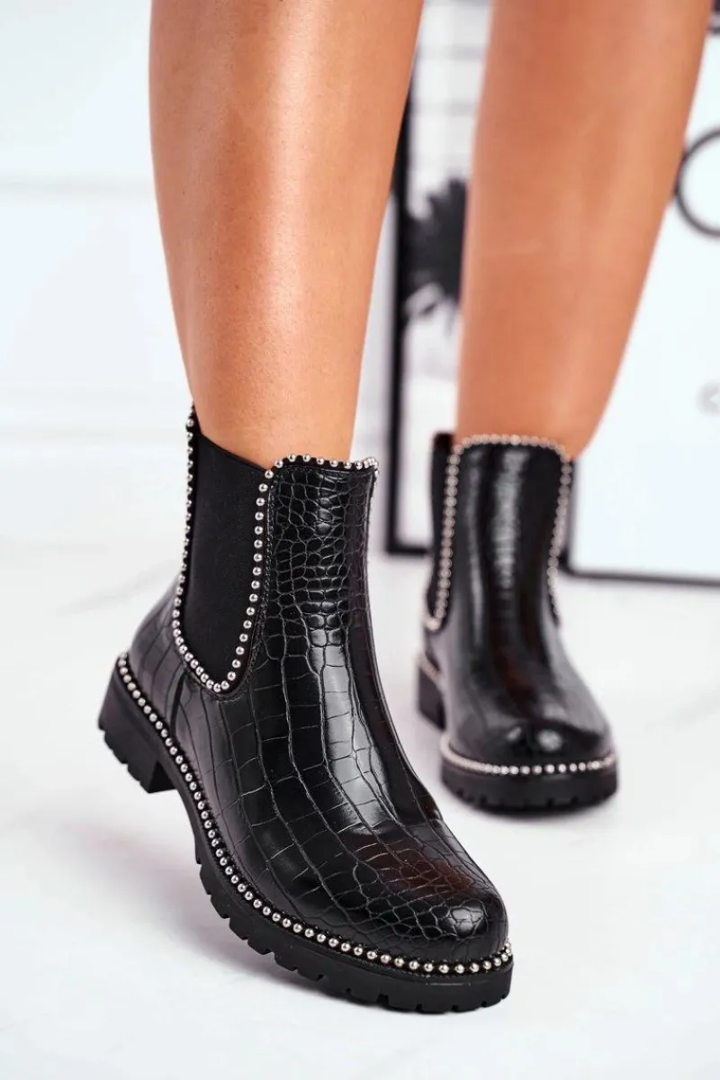 Damskie Botki Sztyblety Ciepłe Czarne Elvina Damskie Czarne Botki|Botki Zimowe Damskie