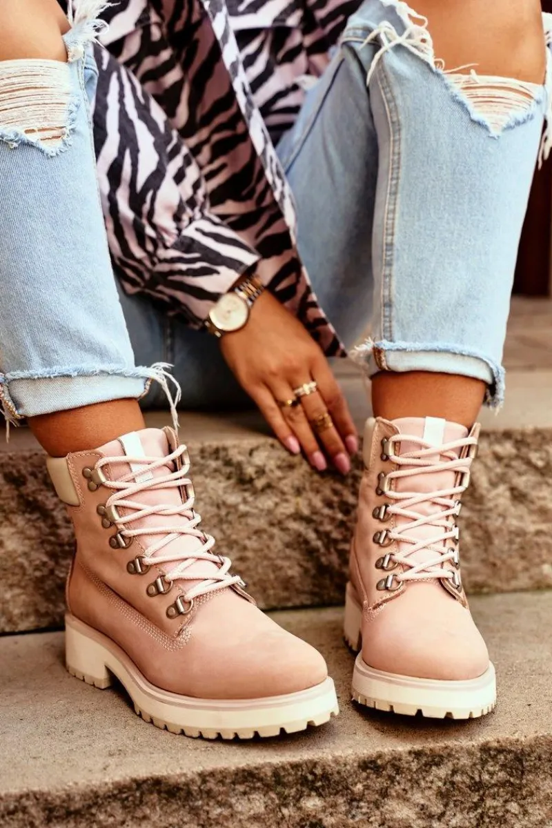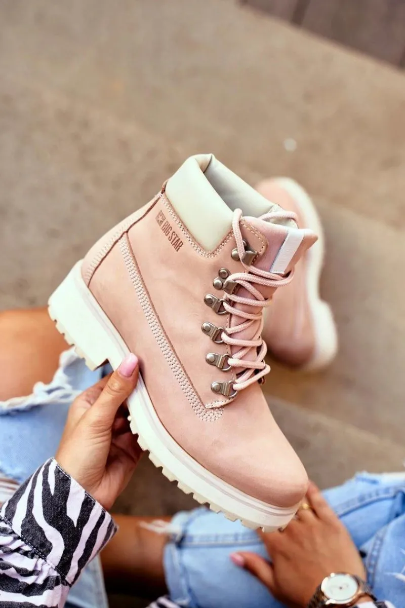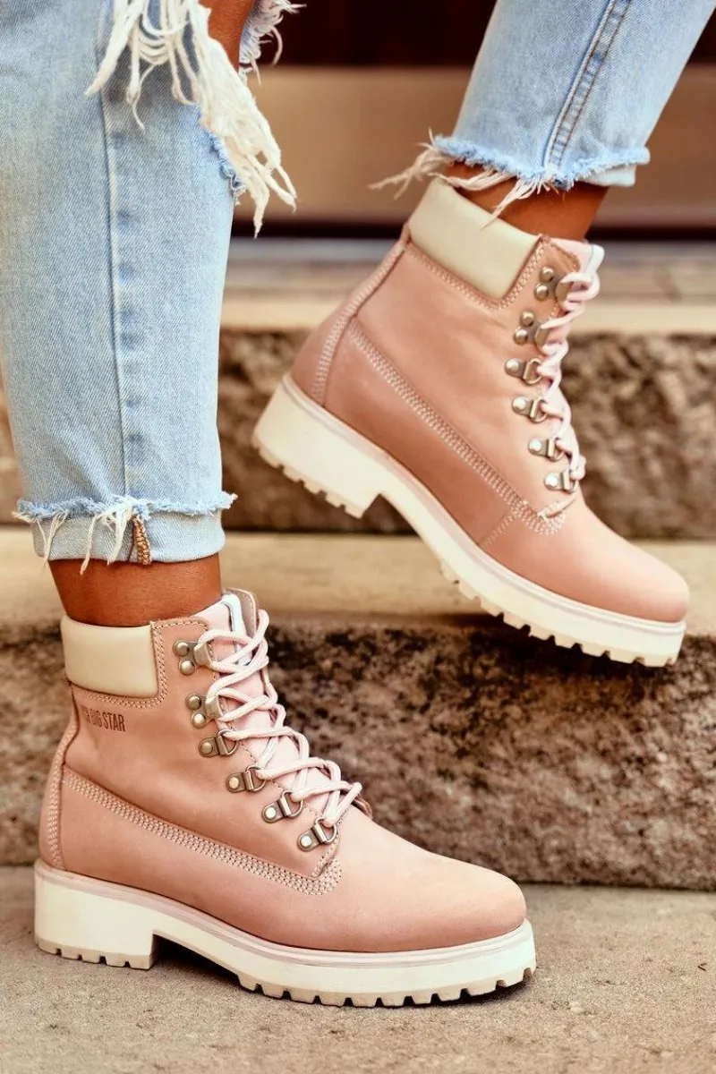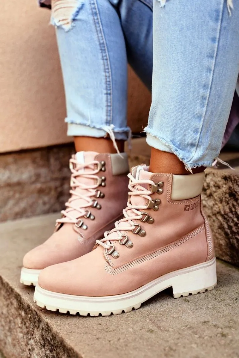 Damskie Botki Trapery Big Star Pastelowe Różowe EE274034 Damskie Damskie Trapery|Botki Sznurowane