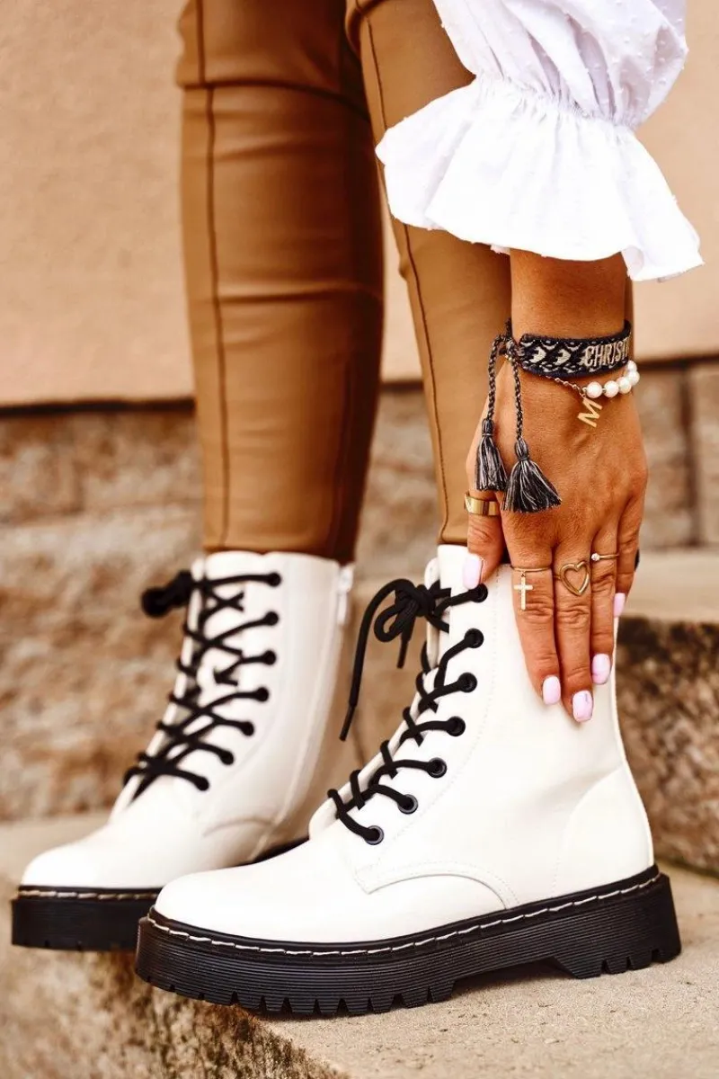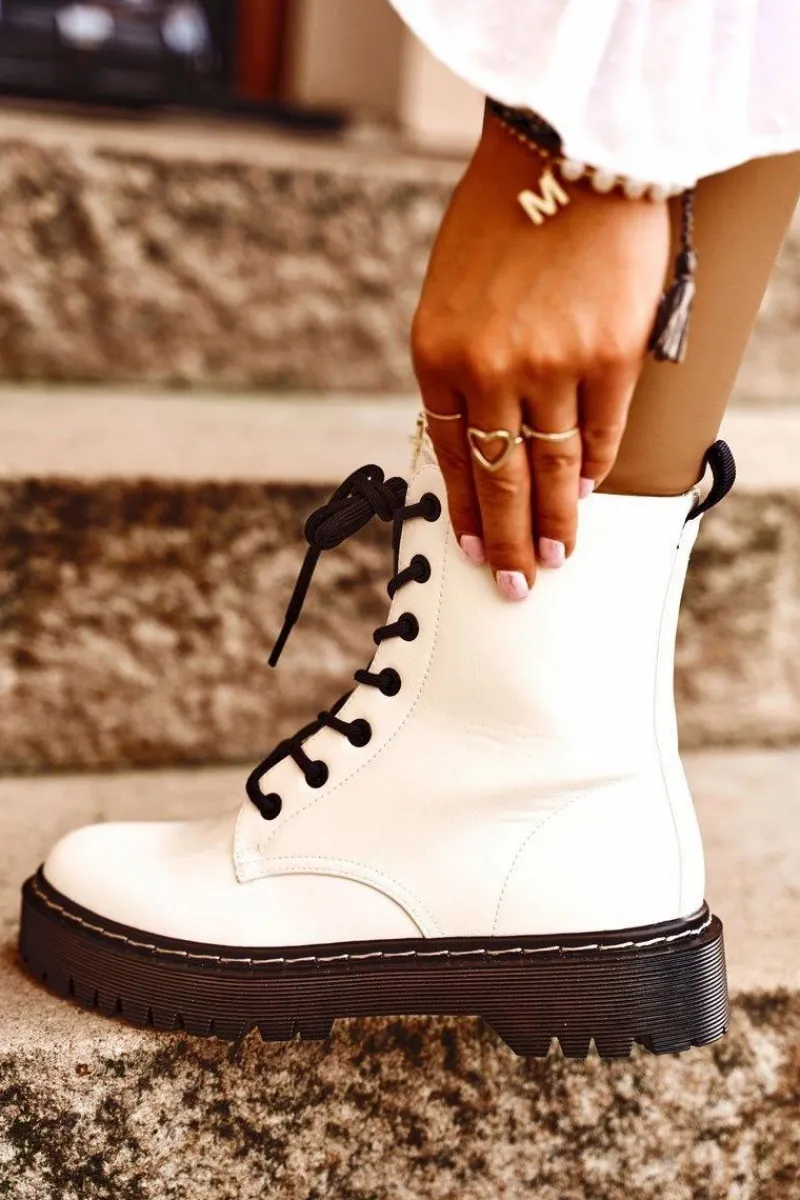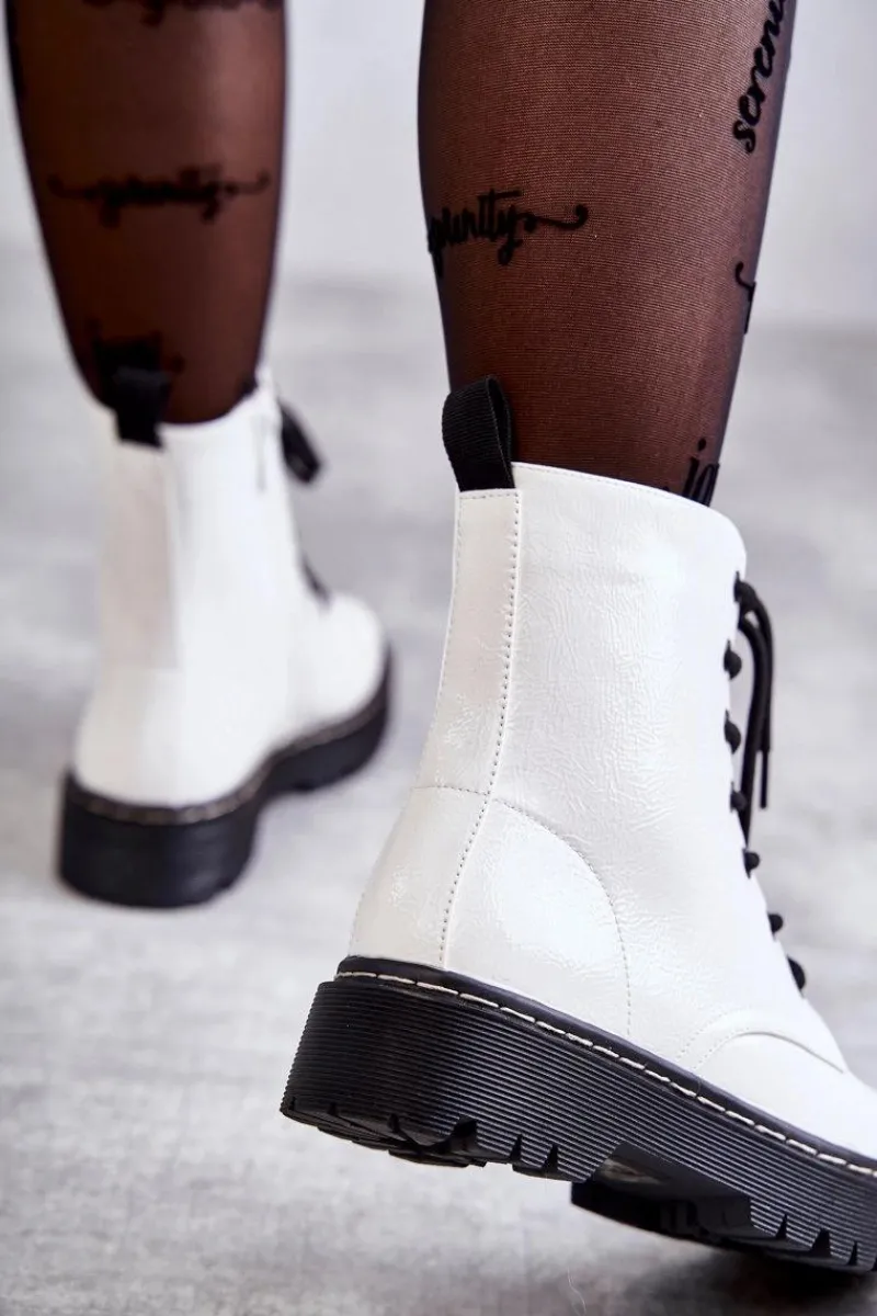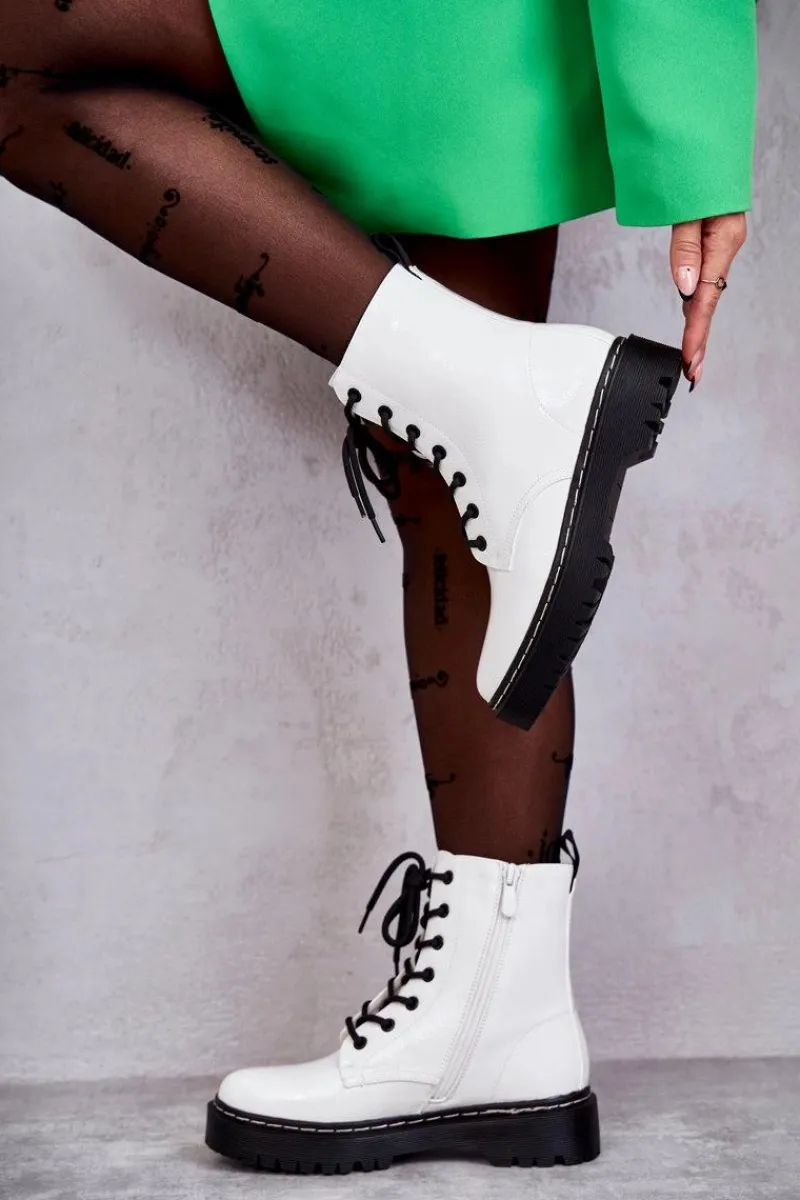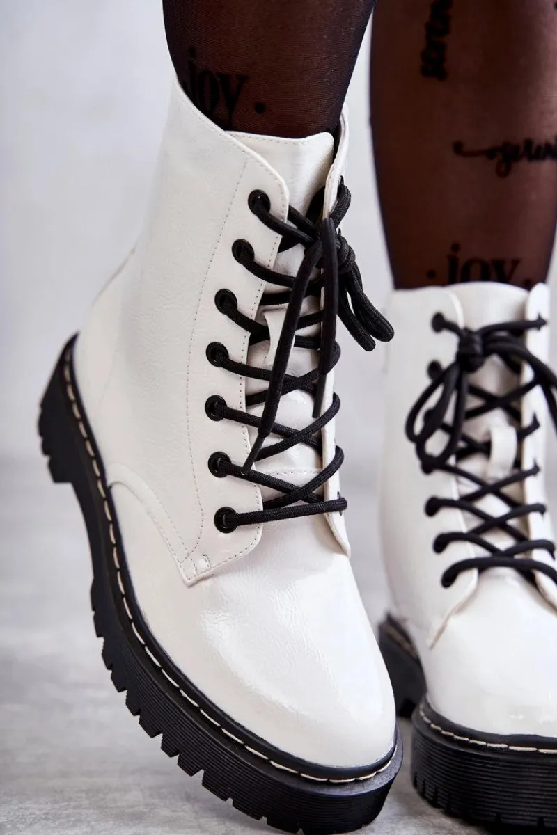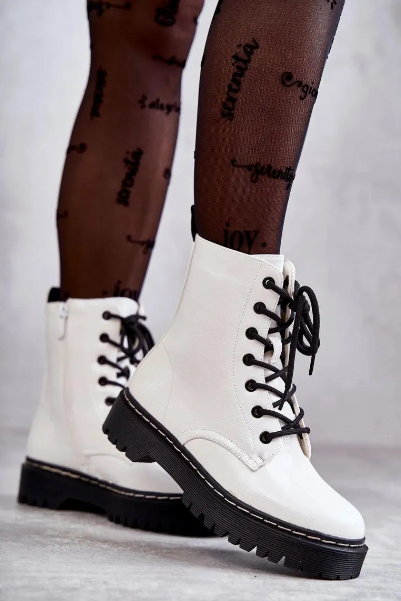 Damskie buty S.Barski Botki Damskie Trapery Białe Kognito