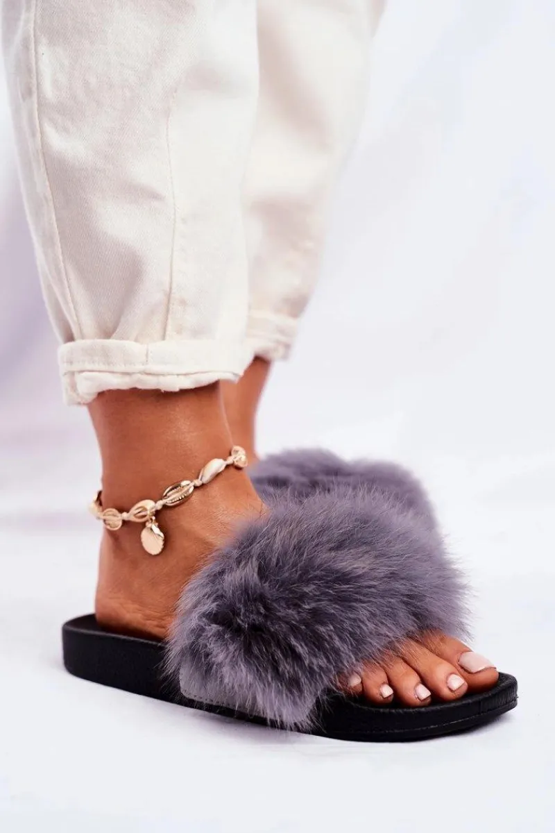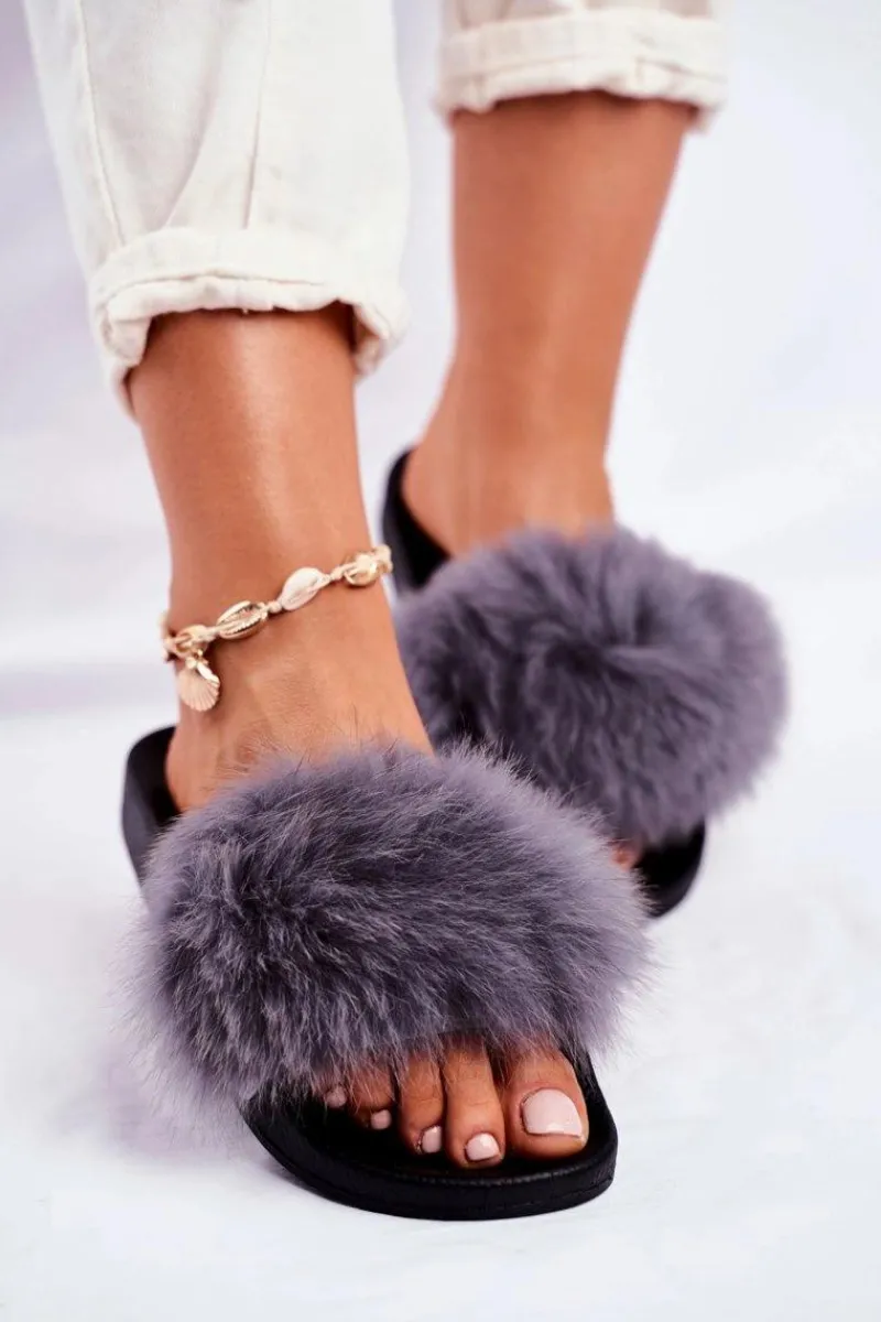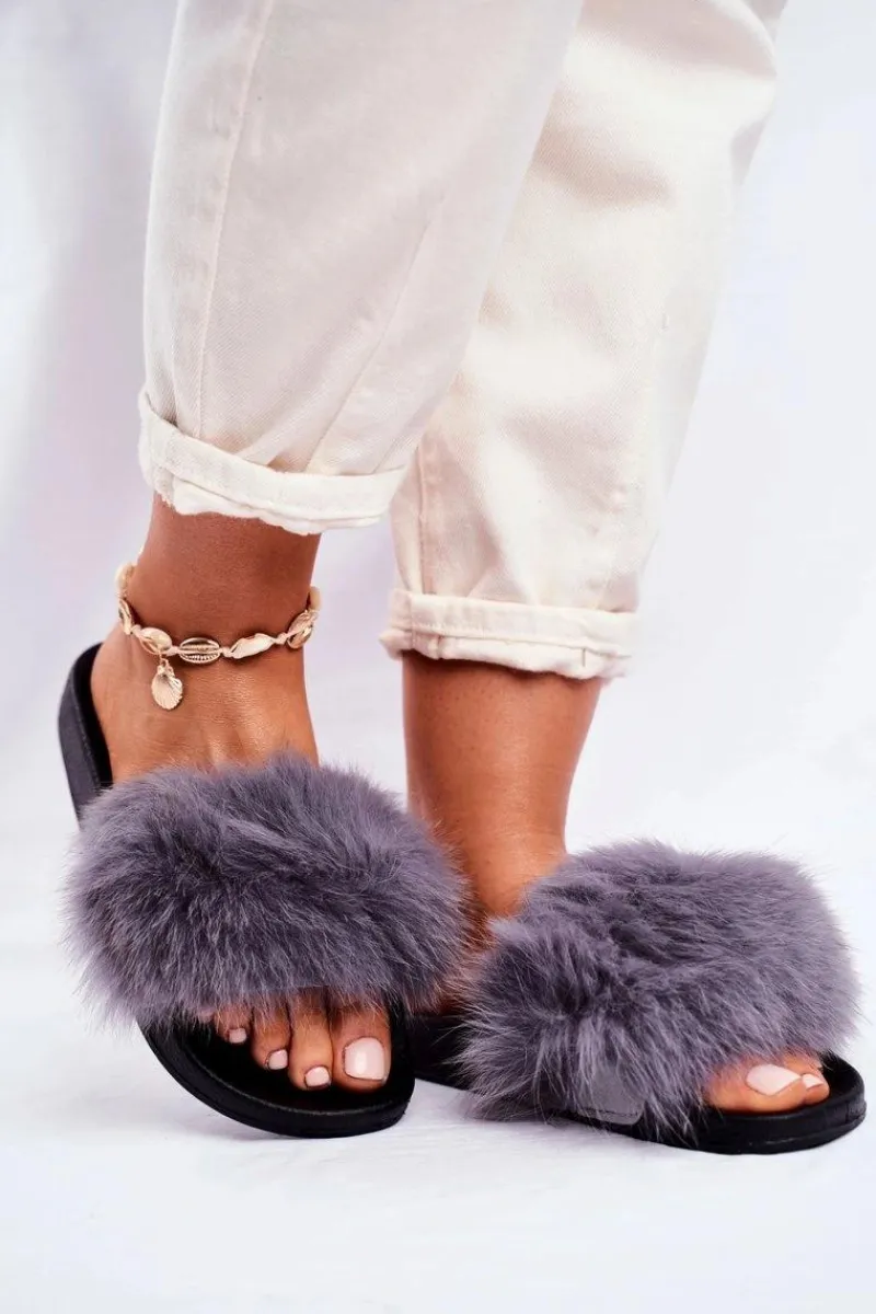 Wygodne klapki z naturalnym futerkiem. Gumowa, delikatnie profilowana podeszwa oraz miękka cholewka zapewnią komfort. Klapki dostępne są w wielu pięknych kolorach.Przy wyborze rozmiaru prosimy sugerować się tabelą rozmiarów.