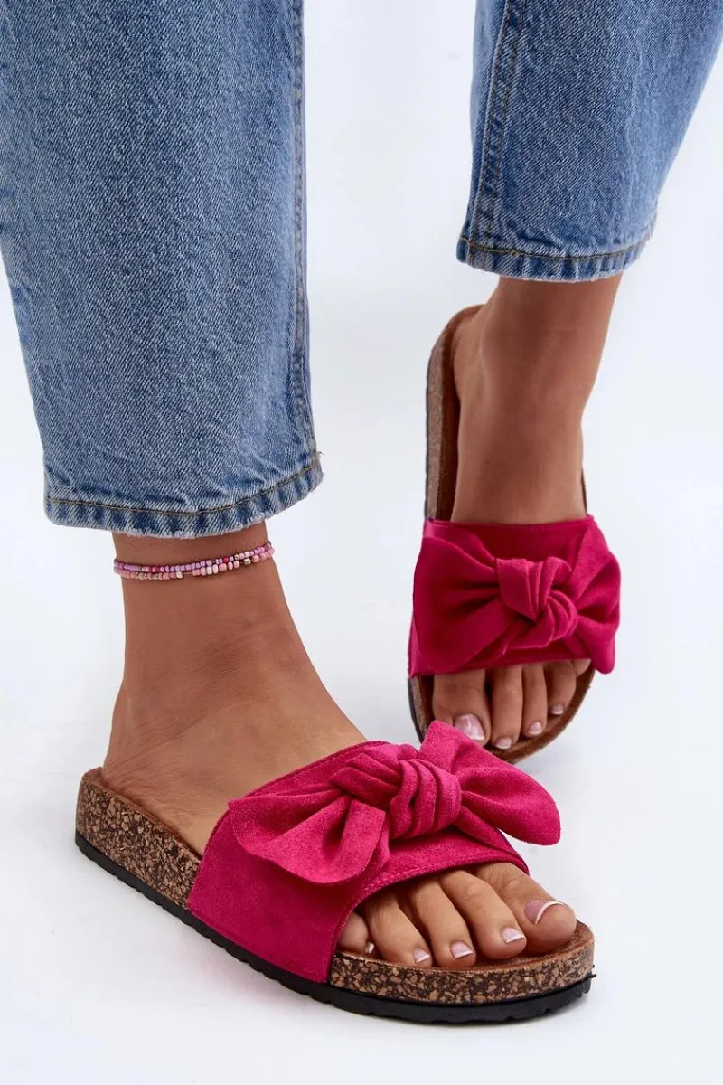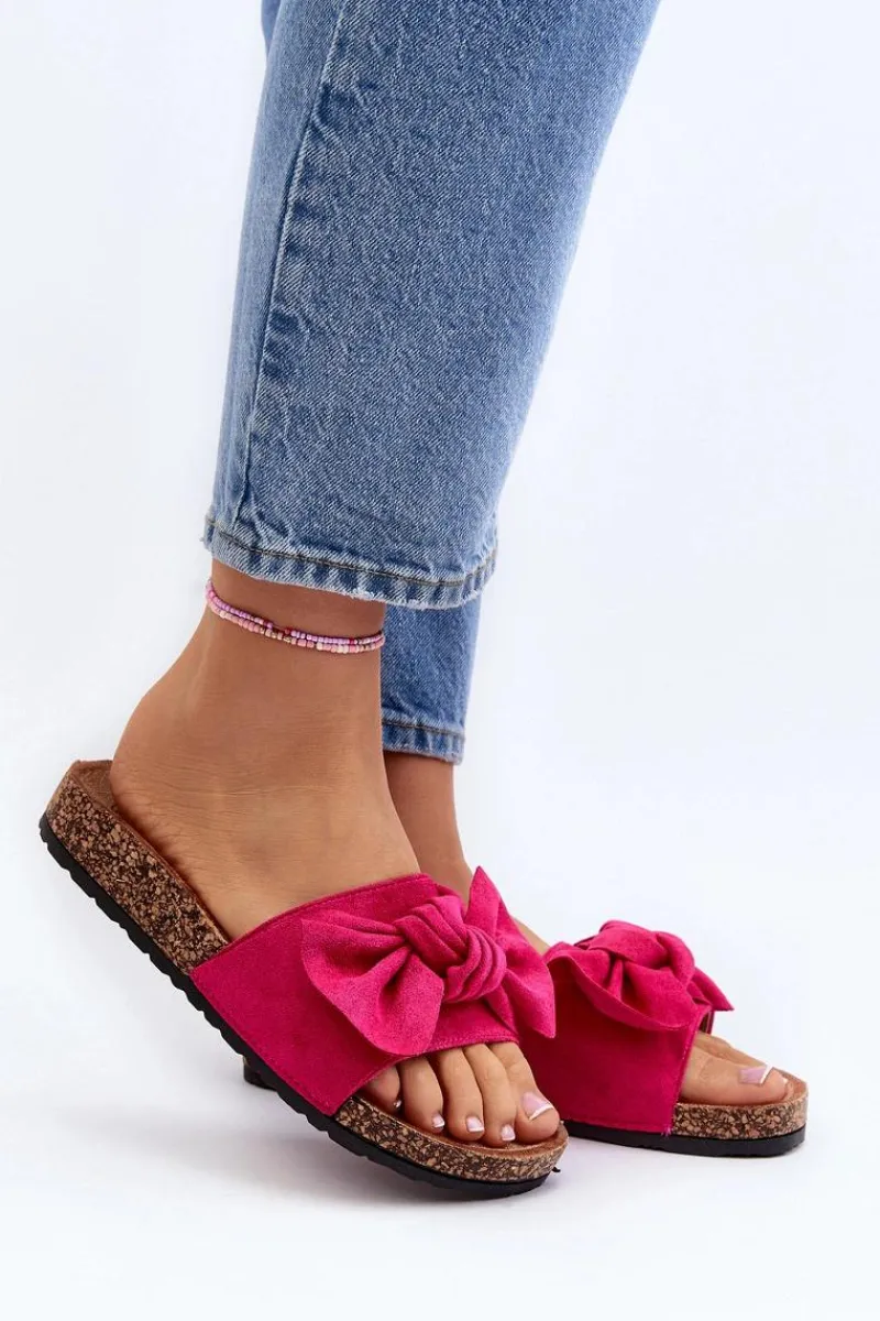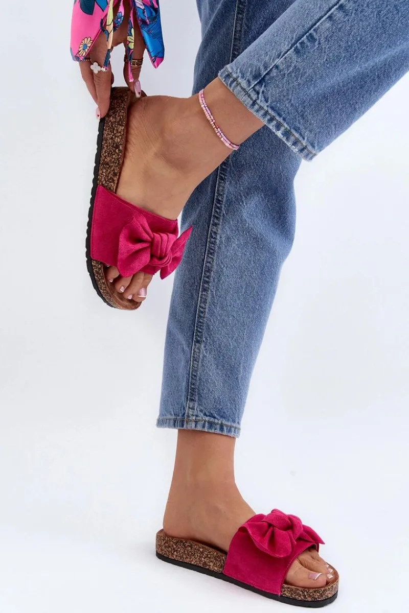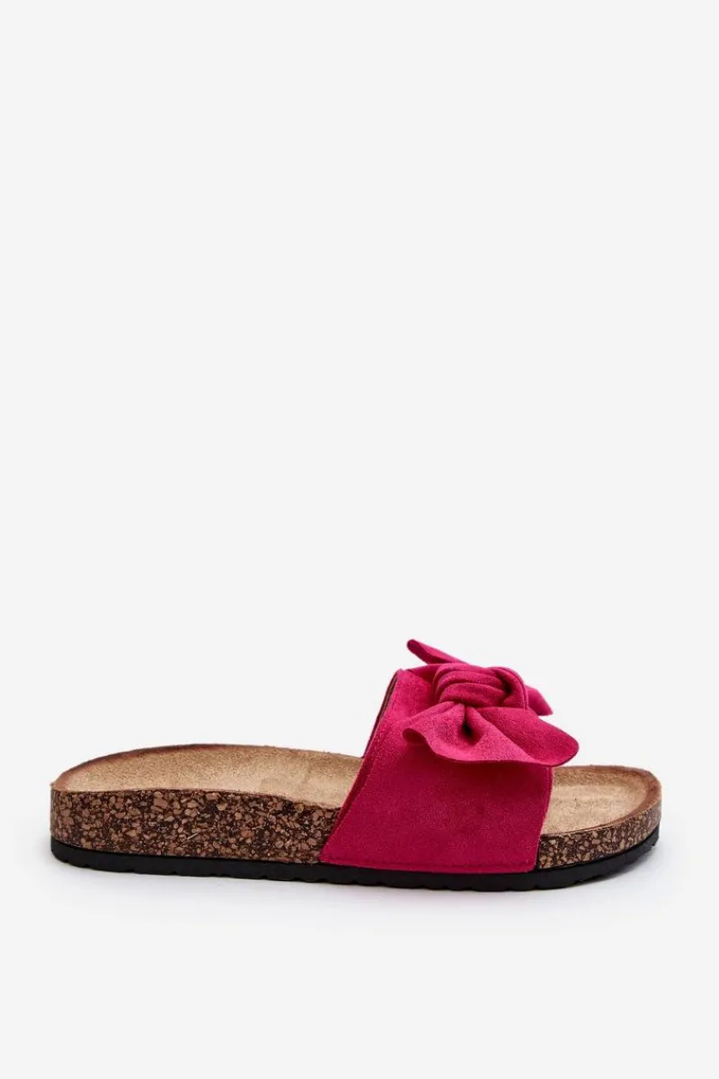 Piękne klapki na korkowej podeszwie. Buty posiadają profilowaną wkładkę, która zagwarantuje maksimum komfortu. Cholewka wykonana jest z miłego w dotyku eko zamszu. Z przodu ozdobna kokarda. Idealne na co dzień! Model ten dostępny jest w różnych kolorach. Koniecznie powinnaś je mieć! Przy wyborze rozmiaru prosimy sugerować się tabelą rozmiarów.