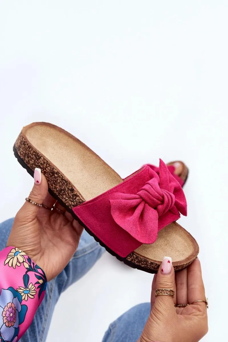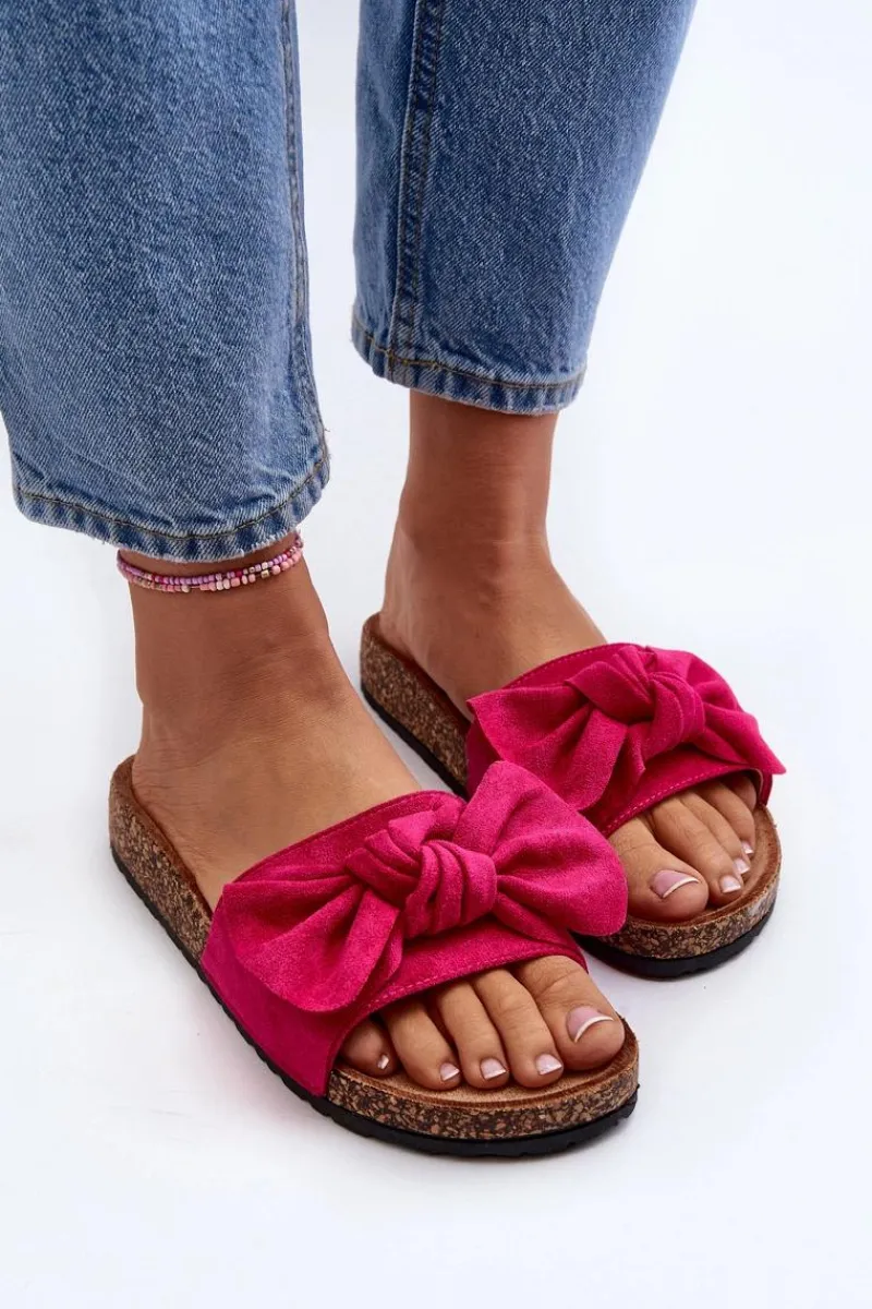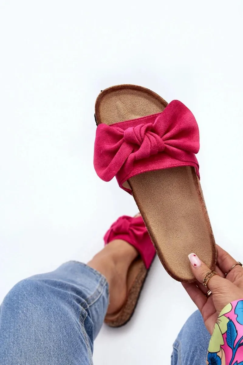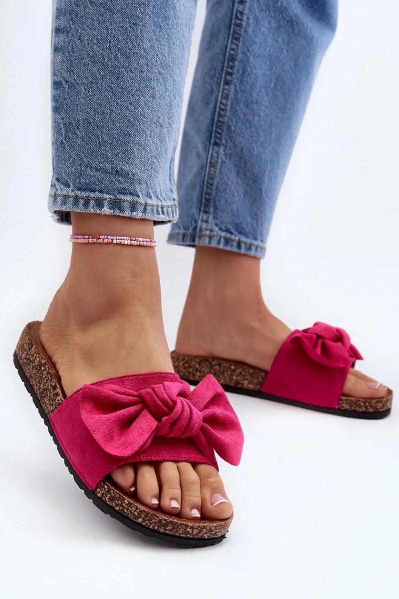 Piękne klapki na korkowej podeszwie. Buty posiadają profilowaną wkładkę, która zagwarantuje maksimum komfortu. Cholewka wykonana jest z miłego w dotyku eko zamszu. Z przodu ozdobna kokarda. Idealne na co dzień! Model ten dostępny jest w różnych kolorach. Koniecznie powinnaś je mieć! Przy wyborze rozmiaru prosimy sugerować się tabelą rozmiarów.