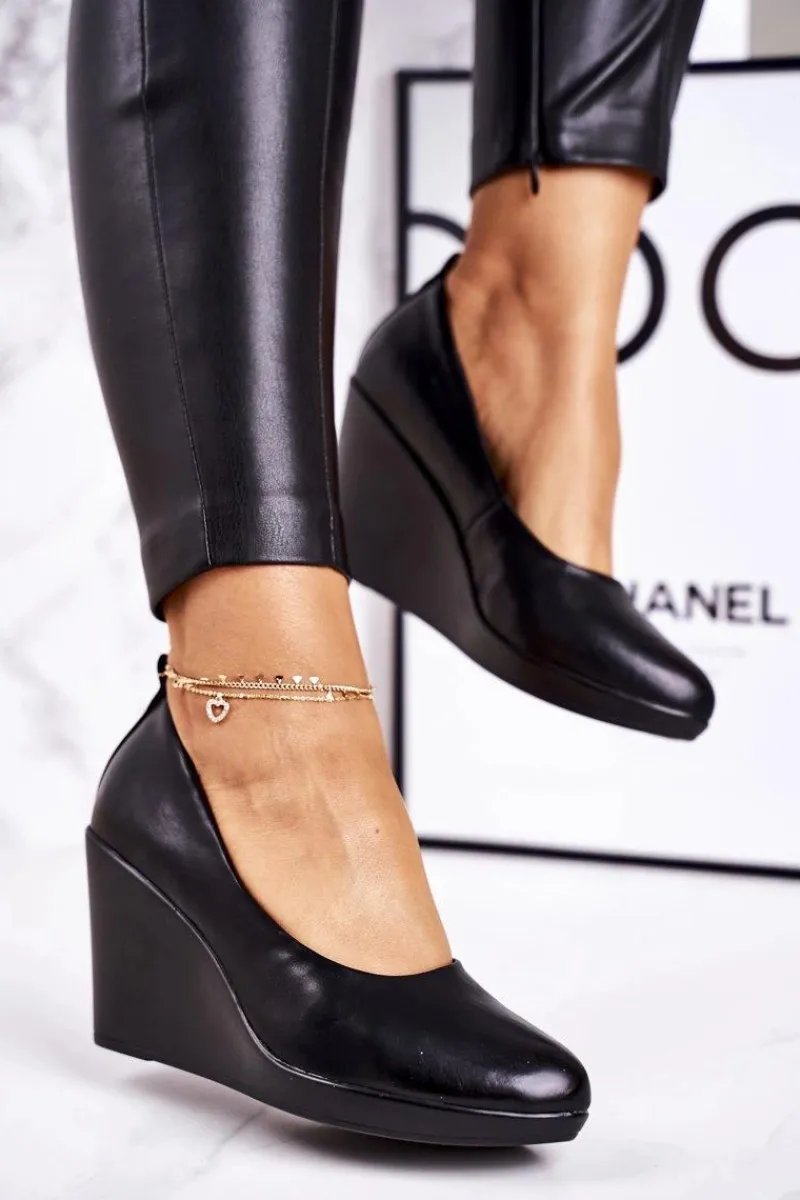 Damskie Klasyczne Czółenka Na Koturnie Czarne Ivonne Damskie Czółenka Na Platformie|Czarne Botki
