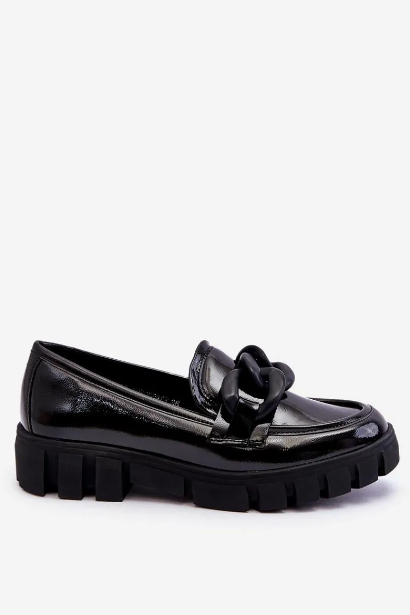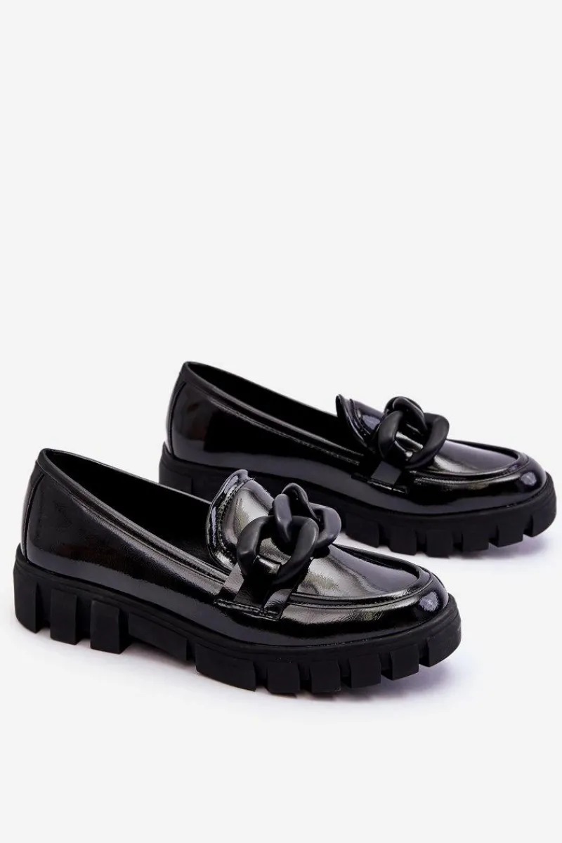 Mokasyny damskie na platformie i płaskim obcasie ze żłobieniami powinny być Twoje! Podeszwa została wykonana z gumowego tworzywa, dzięki któremu jest dodatkowo antypoślizgowa. Miękka wkładka z naturalnej skóry oraz wzmacniany zapiętek zapewni komfortowe użytkowanie. Mokasyny posiadają z przodu ozdobny łańcuch z tworzywa sztucznego. Przy wyborze rozmiaru prosimy sugerować się tabelą rozmiarów.