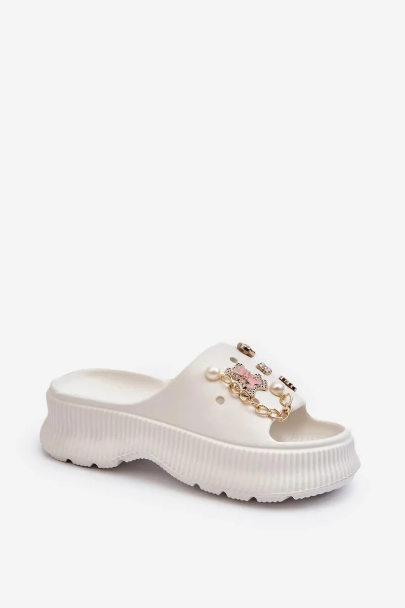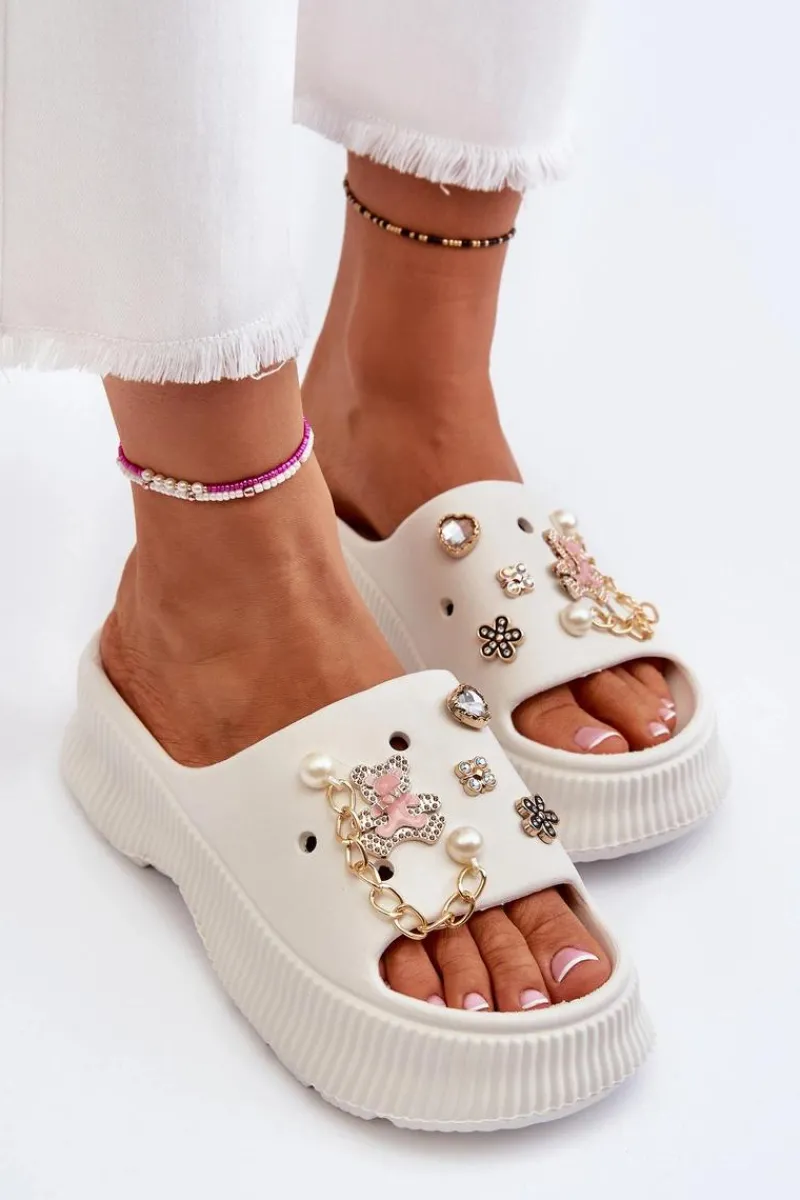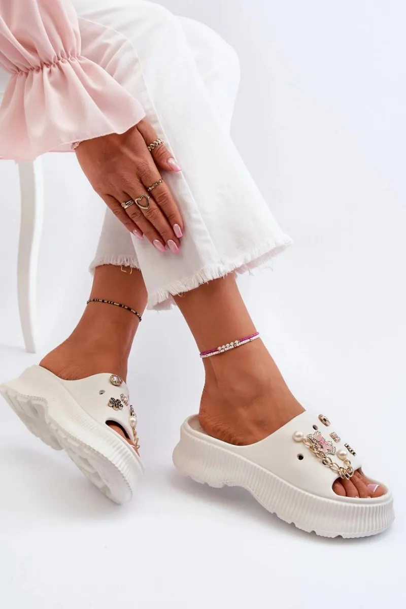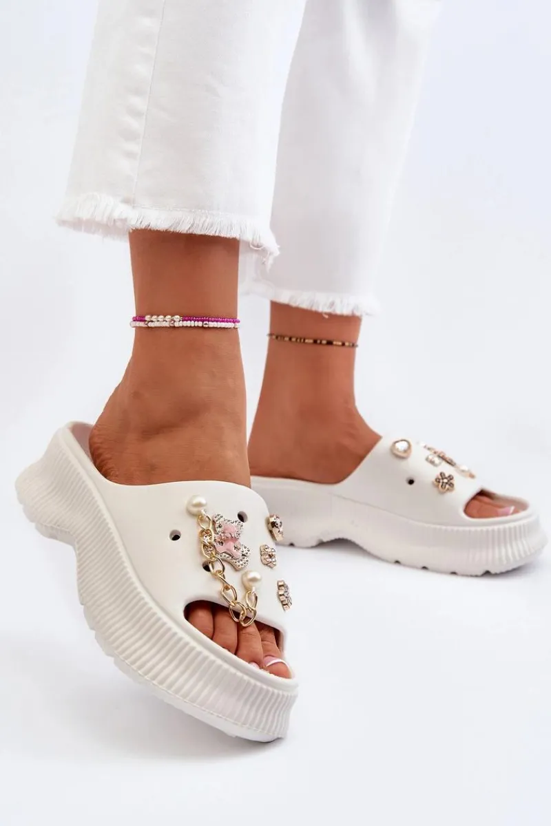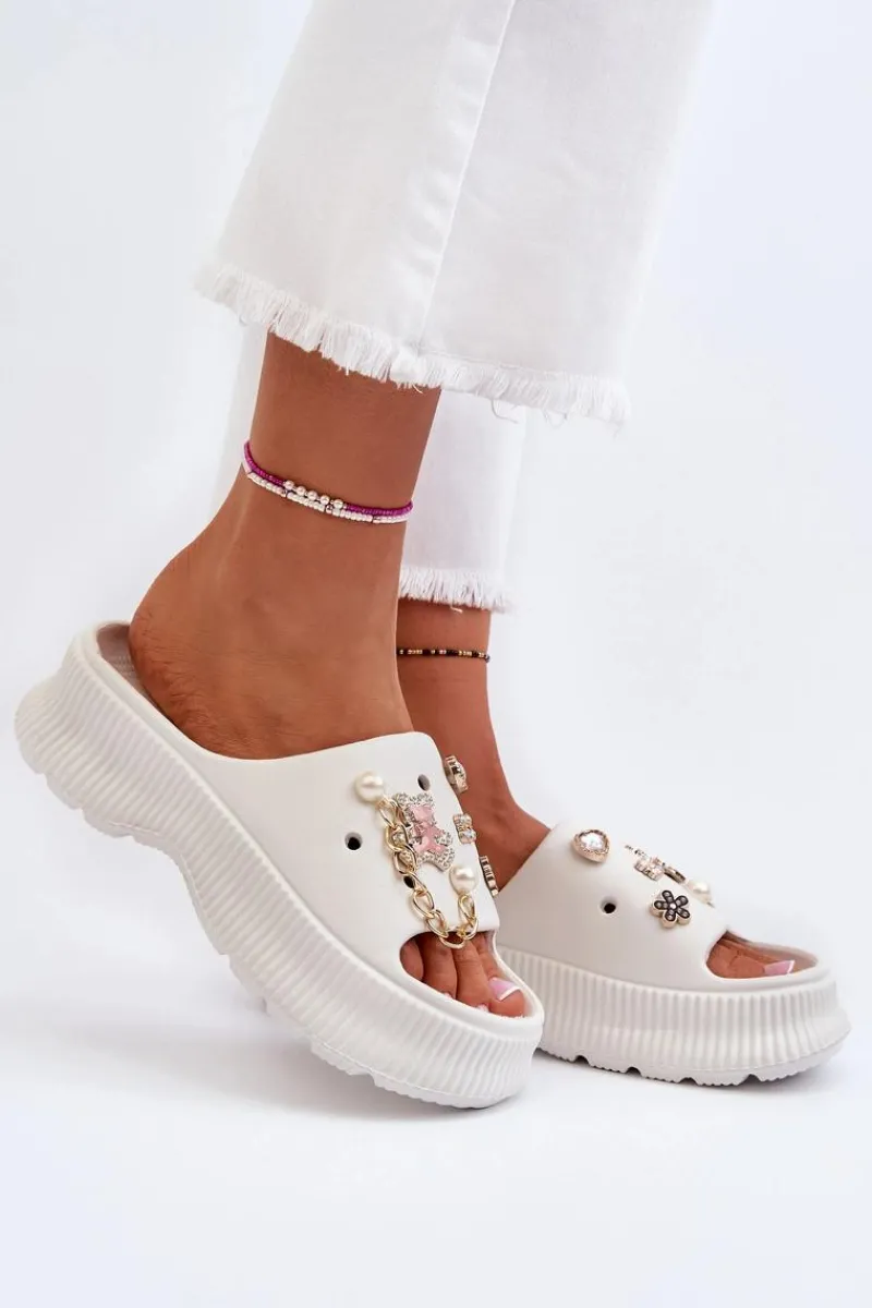 Damskie Piankowe Klapki Z Ozdobami Białe Afariana Damskie Klapki Na Platformie|Klapki Damskie Klasyczne