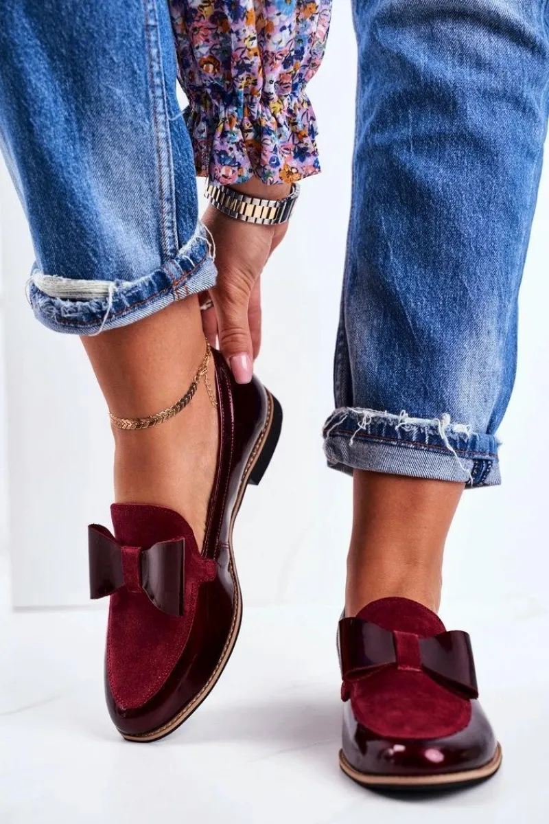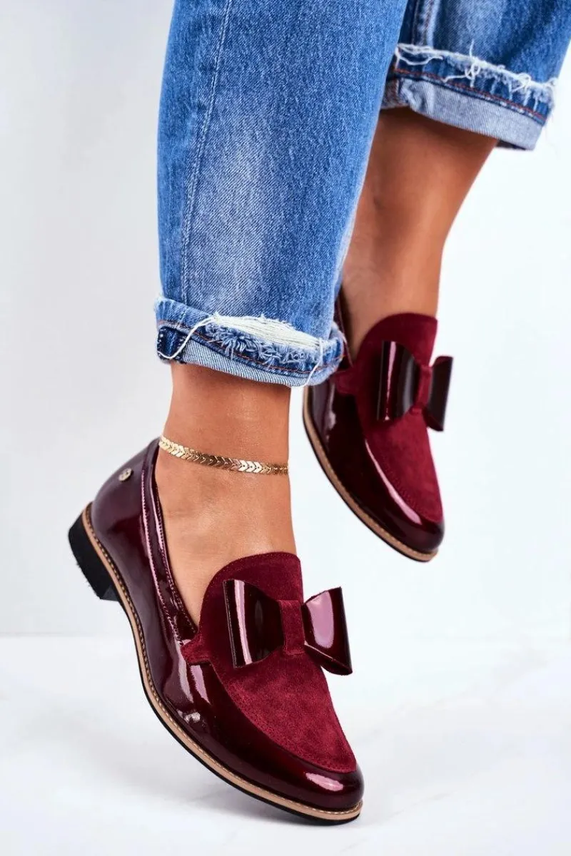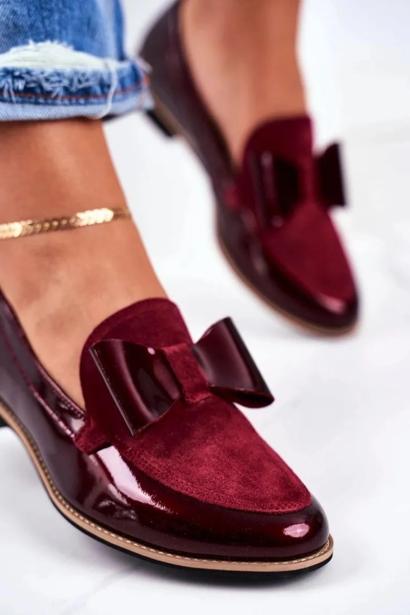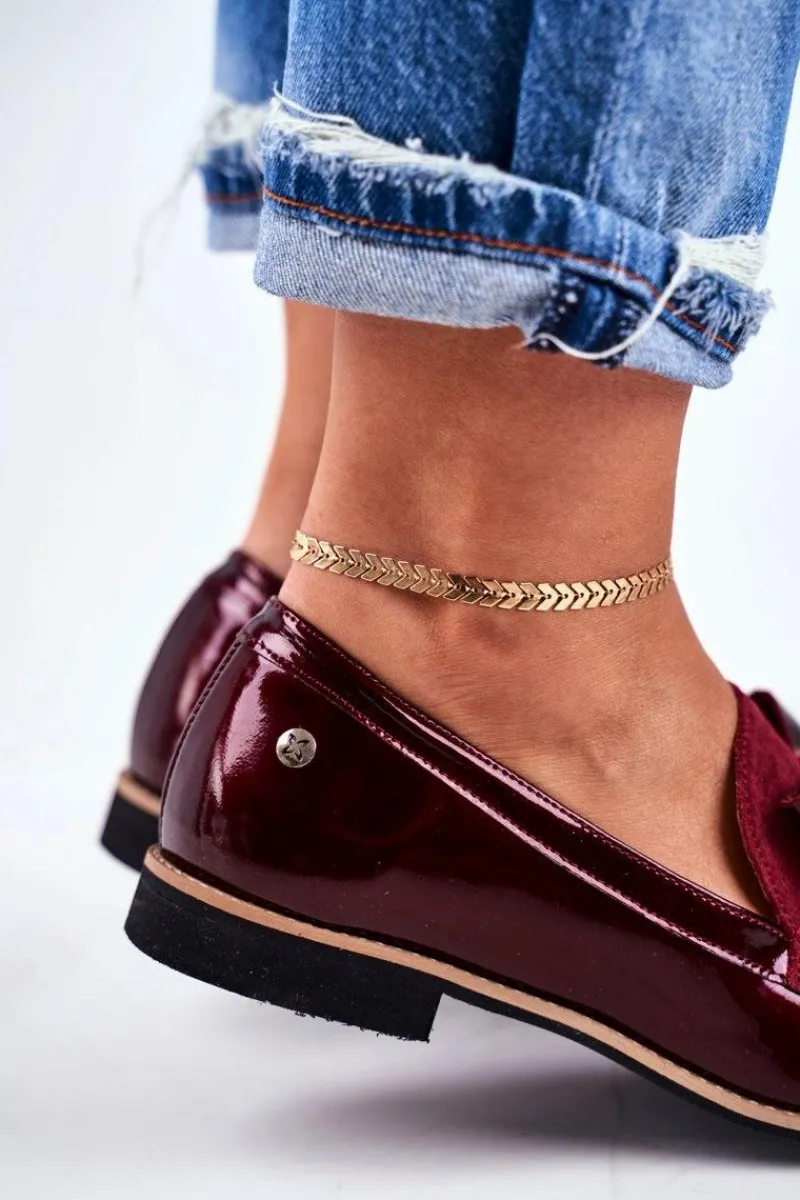 Damskie Półbuty Lakierowane Loafery Bordowe 04099-44/00-1 Damskie Półbuty Lakierowane|Półbuty Skórzane