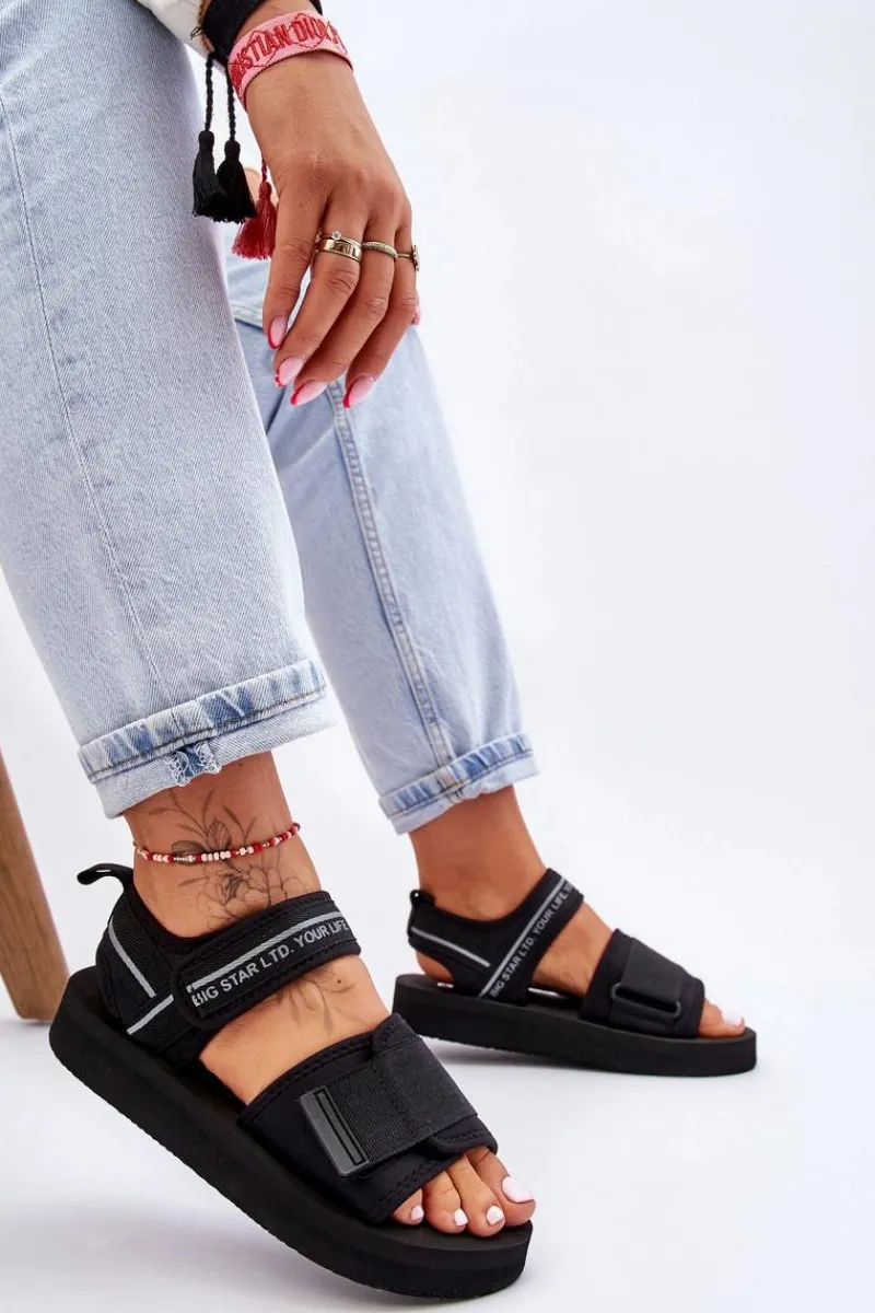 Klasyczne, damskie sandały od marki Big Star! Model ten posiada zapinanie na rzepy. Sandały osadzono na masywnej platformie. Wygoda oraz komfort gwarantowane. Sandałki z wierzchu zostały wykonane z materiału tekstylnego oraz tworzywa sztucznego. Koniecznie sprawdź pozostałe modele sandałek od marki Big Star! Przy wyborze rozmiaru prosimy sugerować się tabelą rozmiarów.