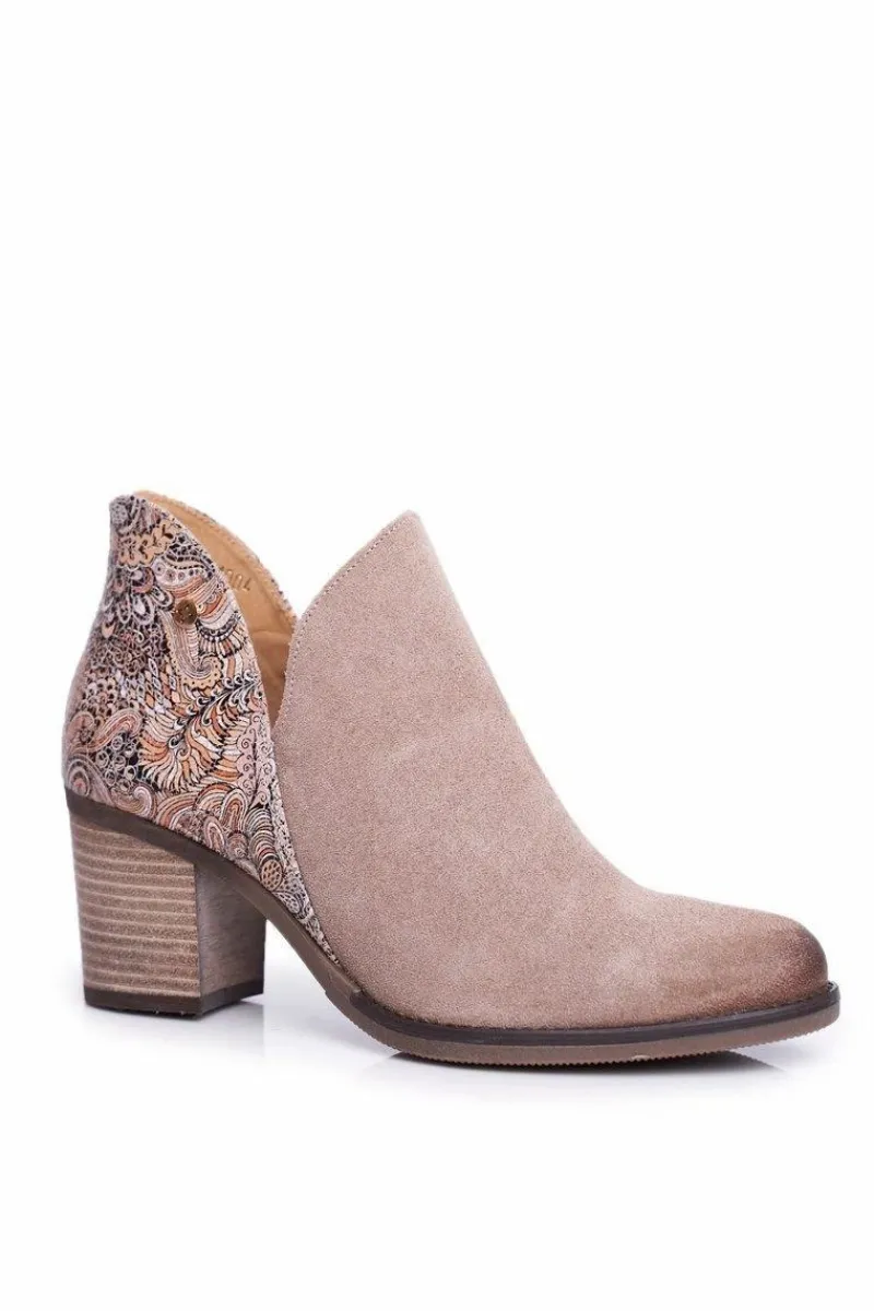 Damskie Skórzane Botki Na Słupku Beżowe 04492-04 Damskie Botki Wiosenne|Botki Maciejka