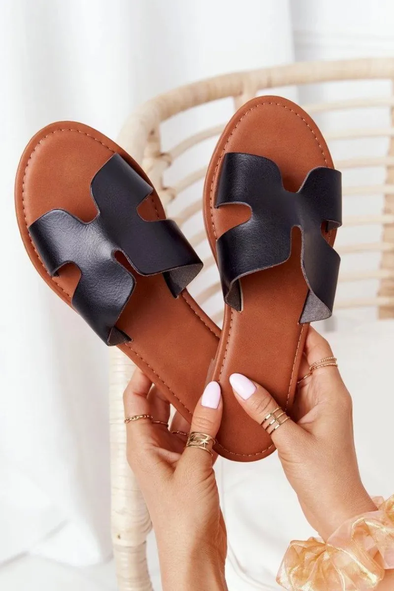 Eleganckie klapki damskie wykonane w całości ze skóry ekologicznej. Antypoślizgowa podeszwa zadba o Twój komfort. Klapki dopełnią wiele letnich stylizacji! Przy wyborze rozmiaru prosimy sugerować się tabelą rozmiarów.
