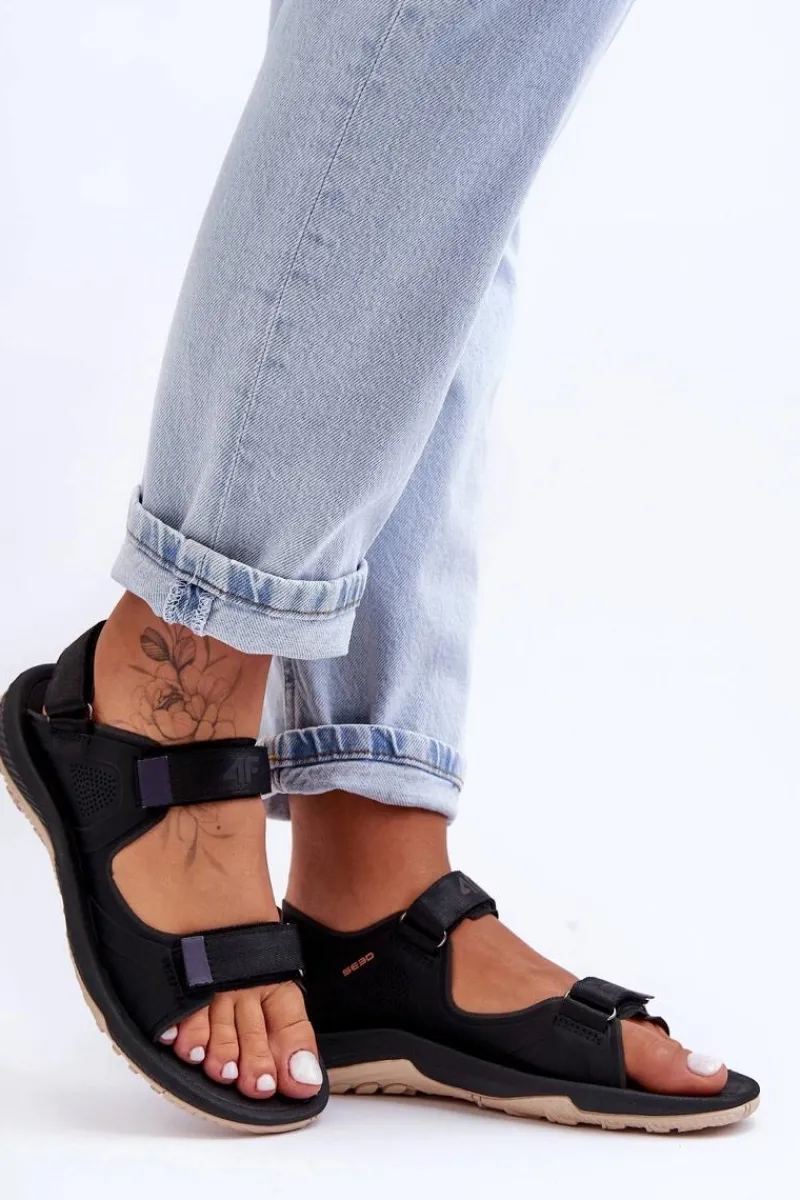 Damskie sandały w sportowym stylu od marki 4F. Wykonane z wierzchu z materiału tekstylnego oraz gumowego tworzywa. Posiadają logo na pasku. Buty są bardzo lekkie i wygodne. Wkładka została wykonana z piankowego tworzywa, natomiast podeszwa z gumowego tworzywa. Dodatkowo jest antypoślizgowa. Model ten jest zapinany na rzepy, co pozwoli na odpowiednie dopasowane do stopy. Świetnie sprawdzą się podczas długich, pieszych wycieczek. Przy wyborze rozmiaru prosimy sugerować się tabelą rozmiarów.