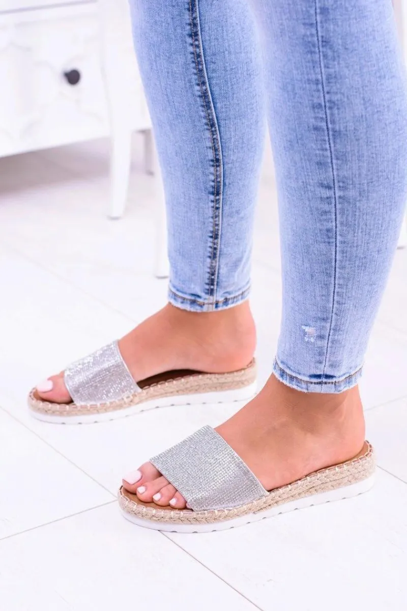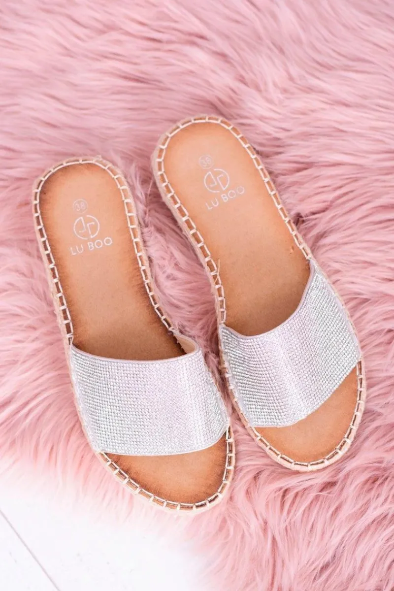 Damskie Srebrne Klapki Lu Boo Cyrkonie ShineMadam Damskie Klapki Damskie Klasyczne