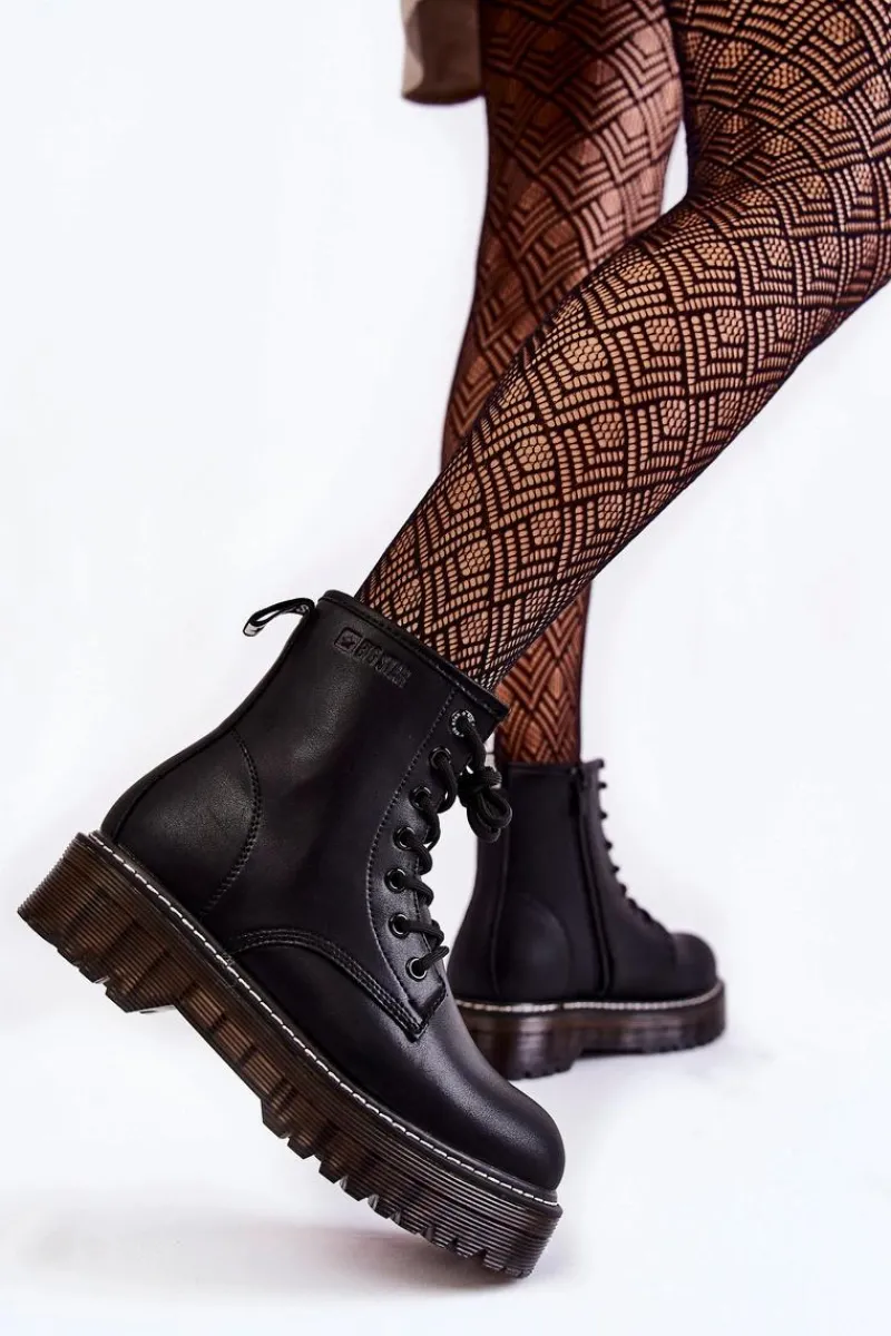 Polska marka BIG STAR to niebanalny styl oraz wysoka jakość wykonania. Te modne botki zostały wykonane ze skóry ekologicznej. Posiadają klasyczne sznurowanie oraz suwak. Podeszwa wykonana jest z wysokojakościowego, gumowego tworzywa. Zapiętek jest usztywniany. Model ten posiada miękką, materiałową wkładkę. Przy wyborze rozmiaru prosimy sugerować się tabelą rozmiarów.
