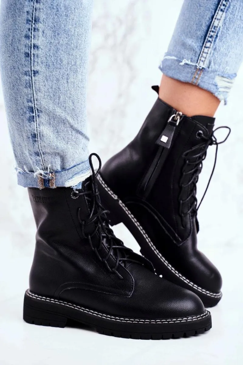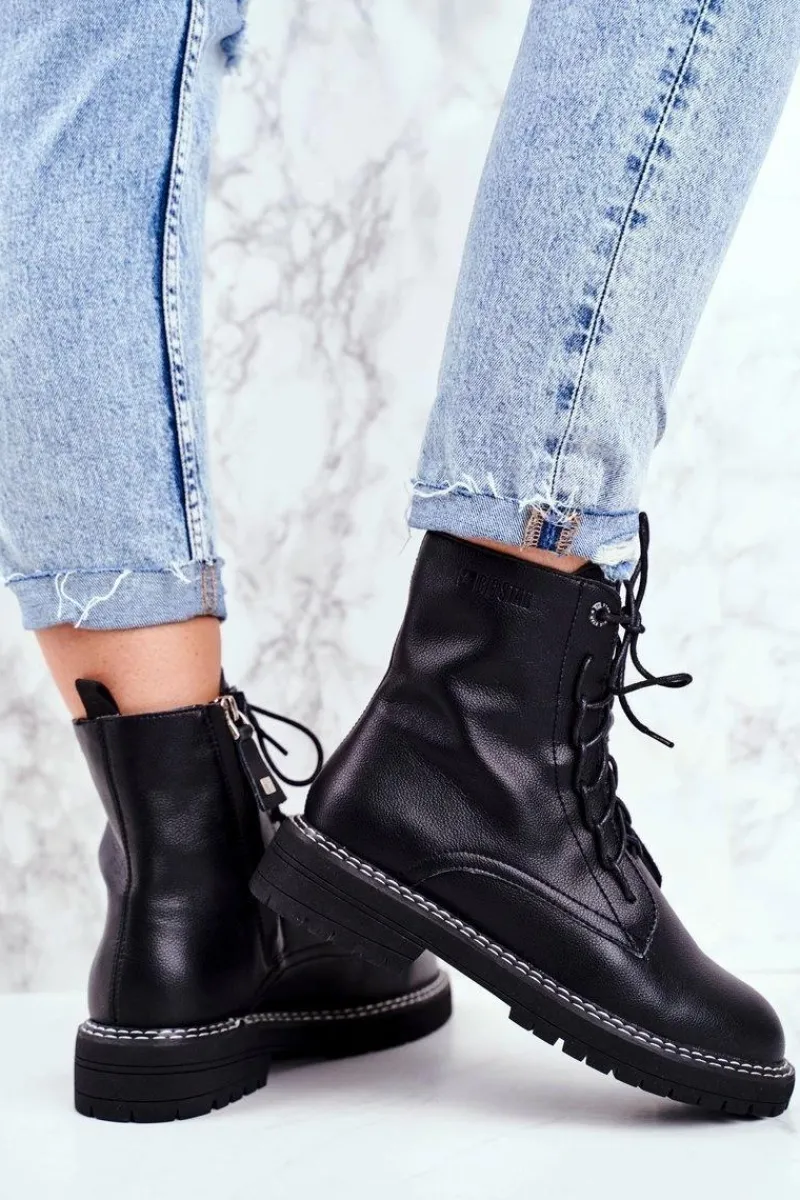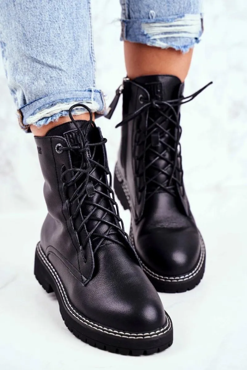 Damskie Trapery|Botki Sznurowane>Big Star Shoes Damskie Botki Trapery Big Star Czarne GG274596
