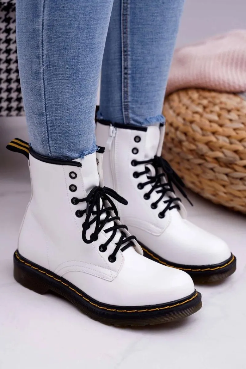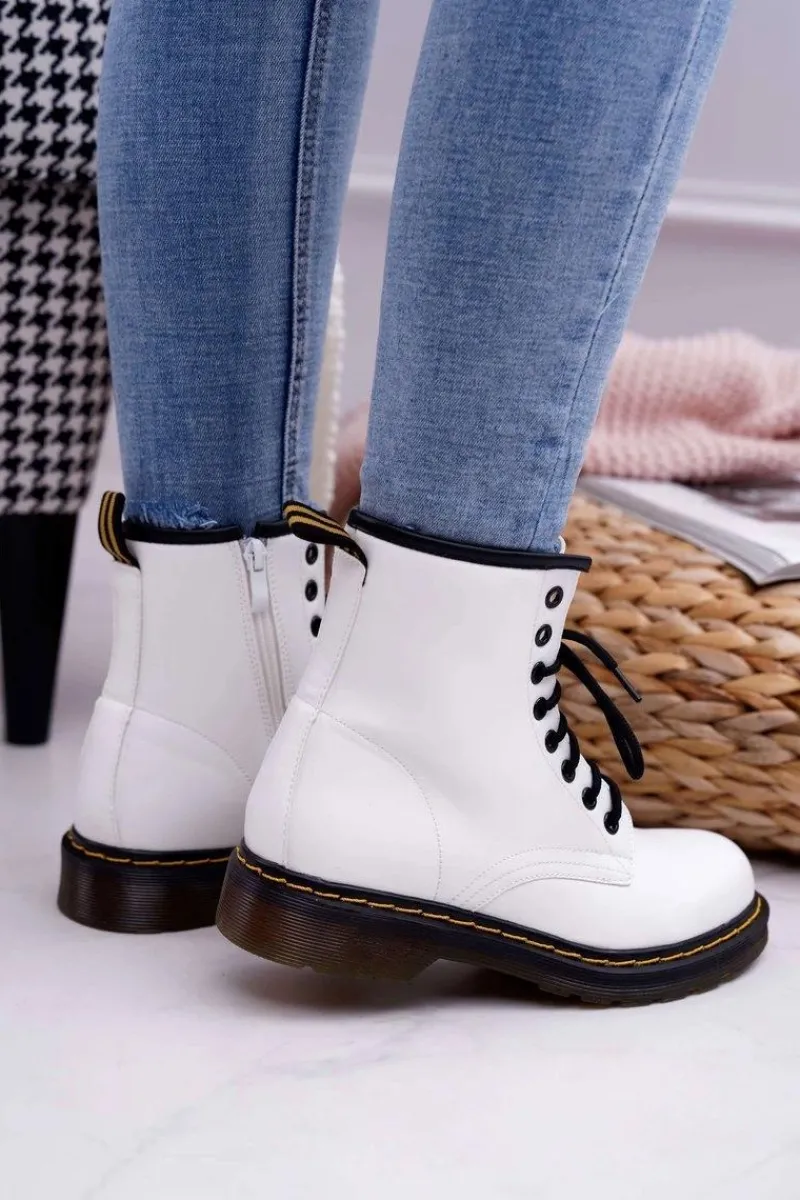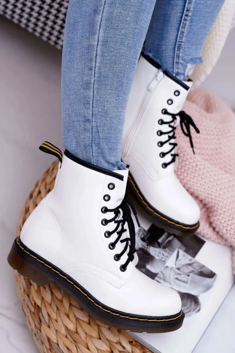 Damskie Trapery|Botki Sznurowane>Boto Damskie Botki Trapery Glany Białe Gangsta