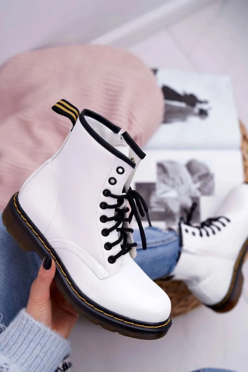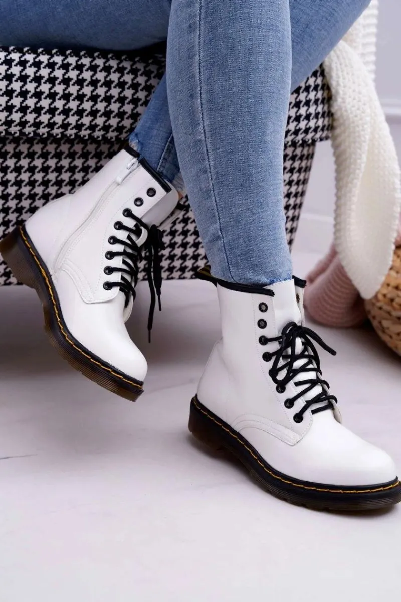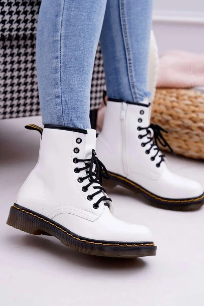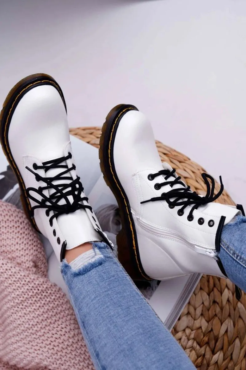 Damskie Trapery|Botki Sznurowane>Boto Damskie Botki Trapery Glany Białe Gangsta