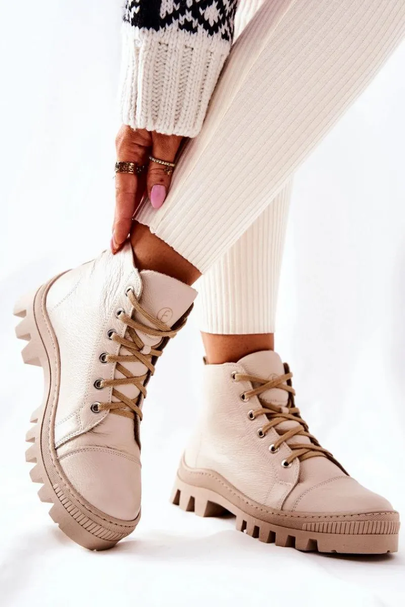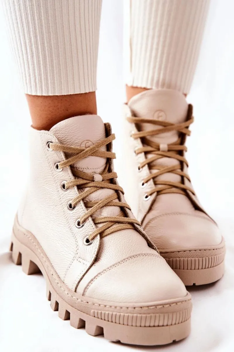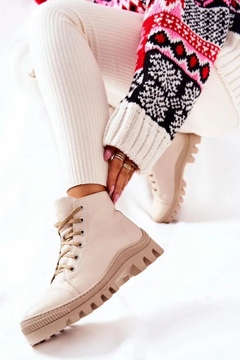 Wysokie trampki-botki zostały wykonane z naturalnej skóry. Posiadają traperową, grubą podeszwę, która będzie idealnie izolować od zimnego podłoża. Wiązanie sprawia, że można dopasować je do tęgości nogi. Trampki w środku posiadają ocieplenie w postaci koca obuwniczego oraz sztywny zapiętek. Sprawdź pozostałą naszą ofertę ocieplanych trampków i botków! Przy wyborze rozmiaru prosimy sugerować się tabelą rozmiarów.