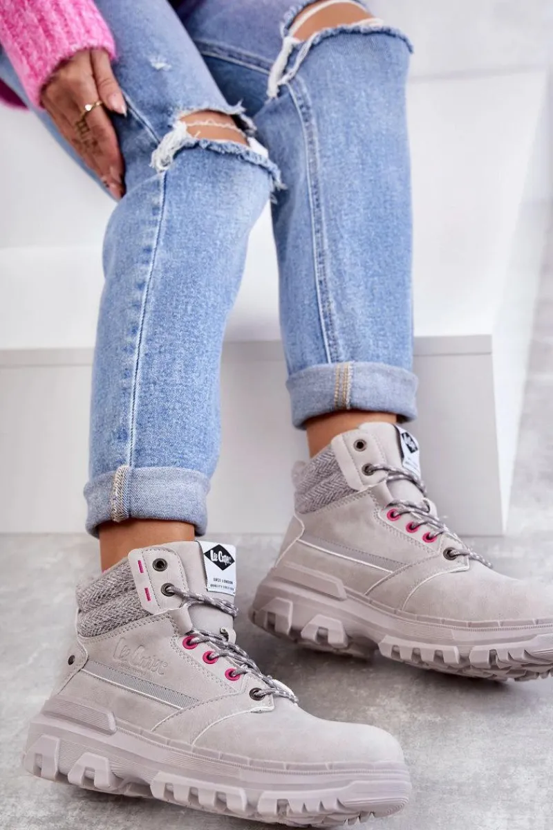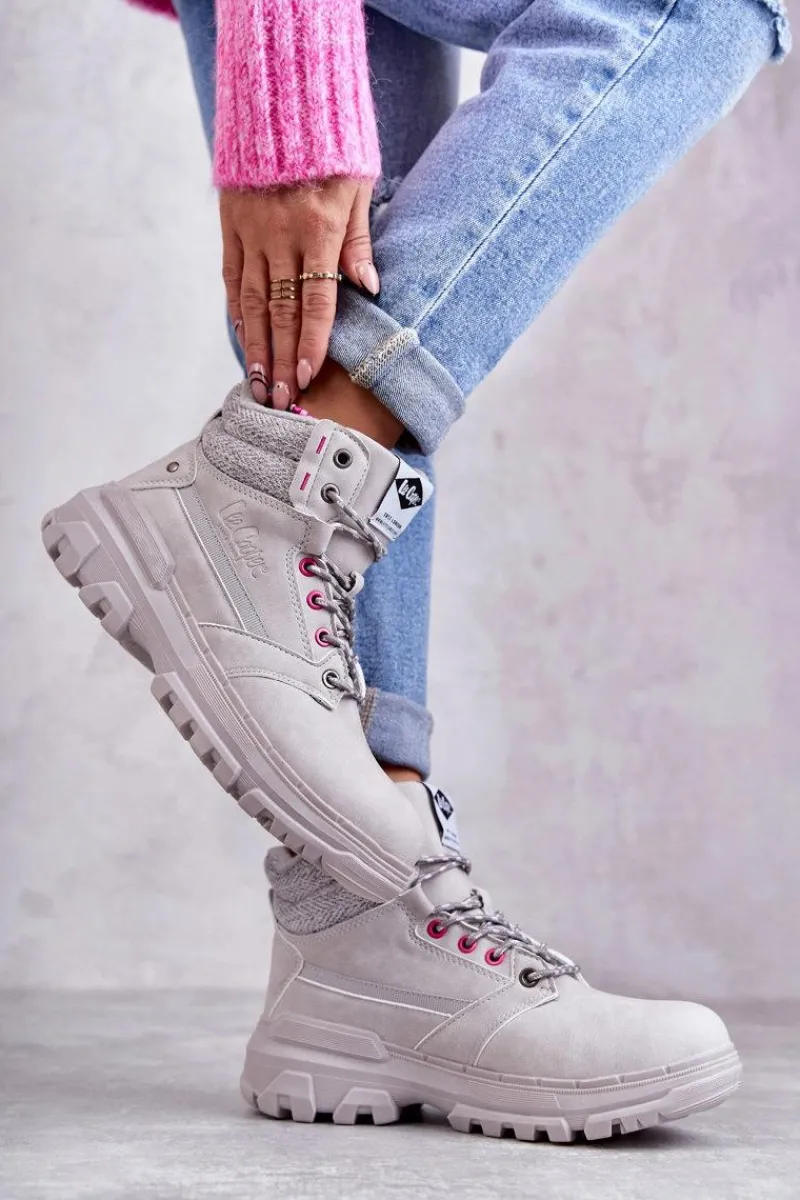 Trapery damskie wykonane z ekologicznej skóry z usztywnianym zapiętkiem. Buty zostały osadzone na płaskim obcasie i masywnej platformie, co sprawia, że są niezwykle stabilne. Posiadają wewnątrz ocieplenie w postaci polaru. Wkładka jest miękka i wygodna, a także ocieplona. Trapery te doskonale sprawdzą się podczas jesiennych, chłodnych dni. Przy wyborze rozmiaru prosimy sugerować się tabelą rozmiarów.