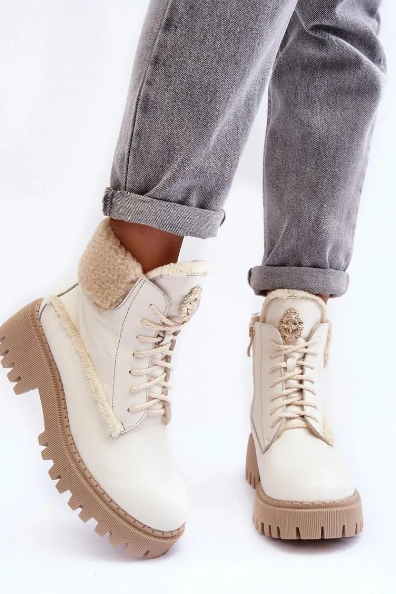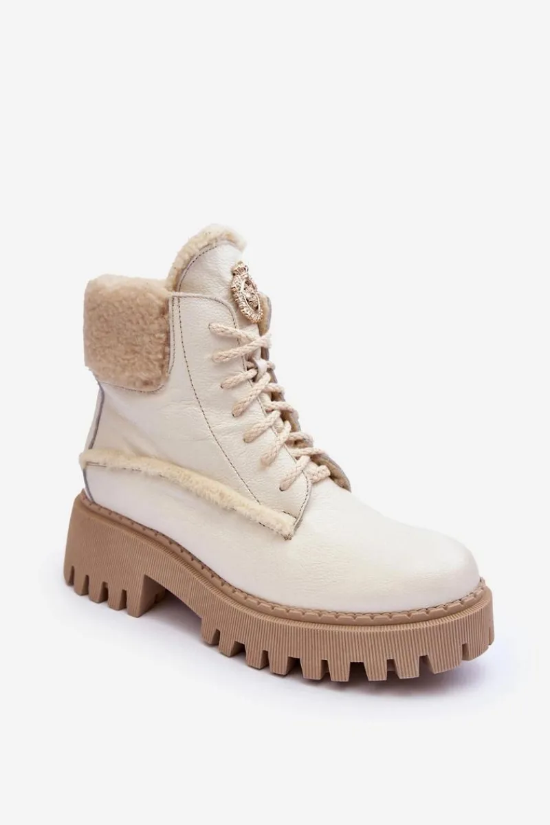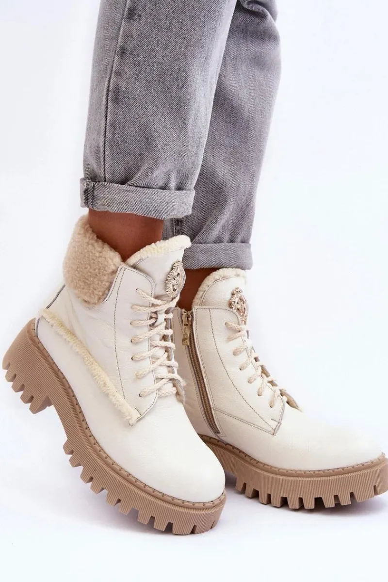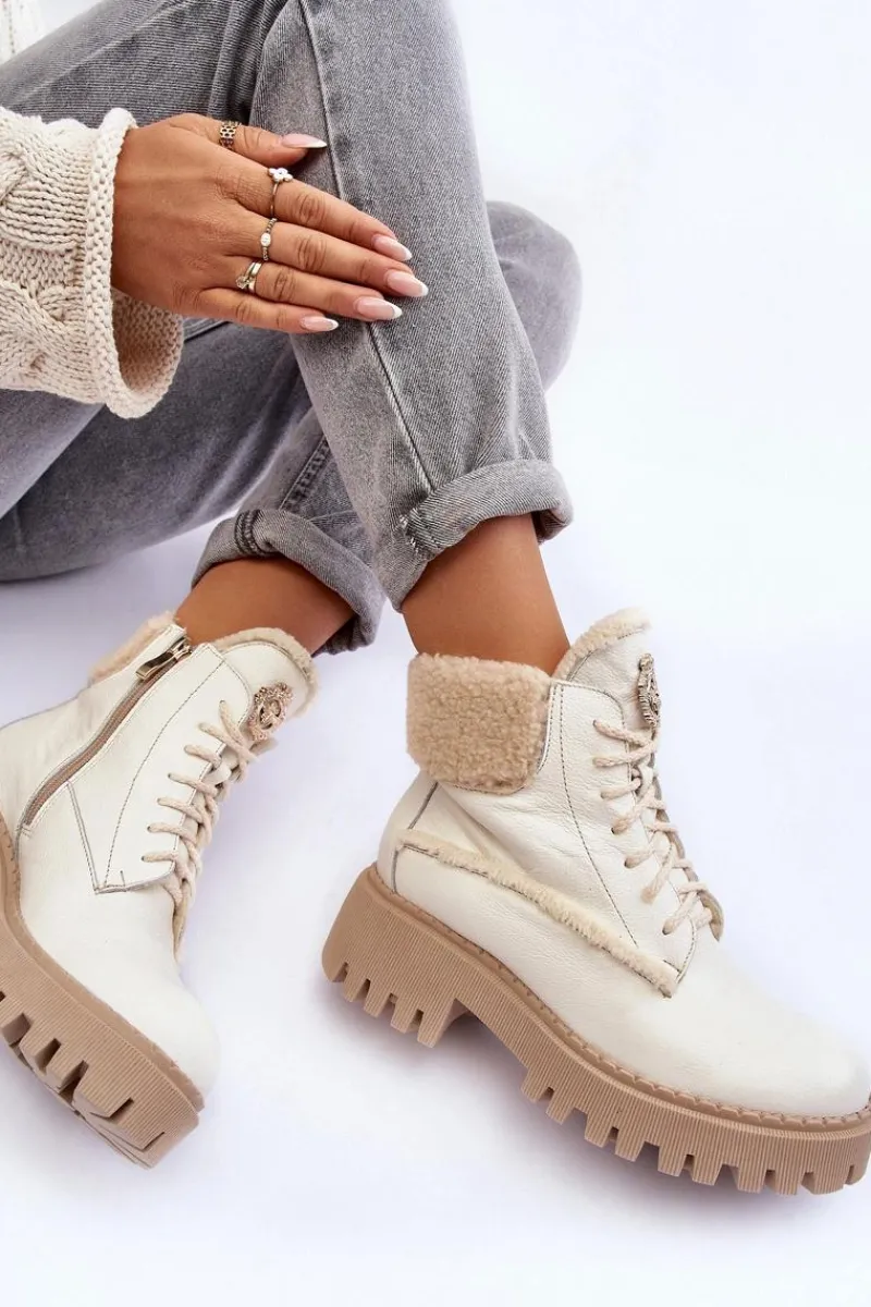 Botki w formie traperów zostały osadzone na masywnym obcasie. Podeszwa z bieżnikiem. Na języku znajduje się ozdobny element. Trapery wykonane zostały z wysokiej jakości naturalnych skór. Wewnątrz botki ocieplono wełną. Model ten posiada sznurowanie oraz suwak z boku cholewki. Dodatkowo zapiętek jest usztywniany. Przy wyborze rozmiaru prosimy sugerować się tabelą rozmiarów.
