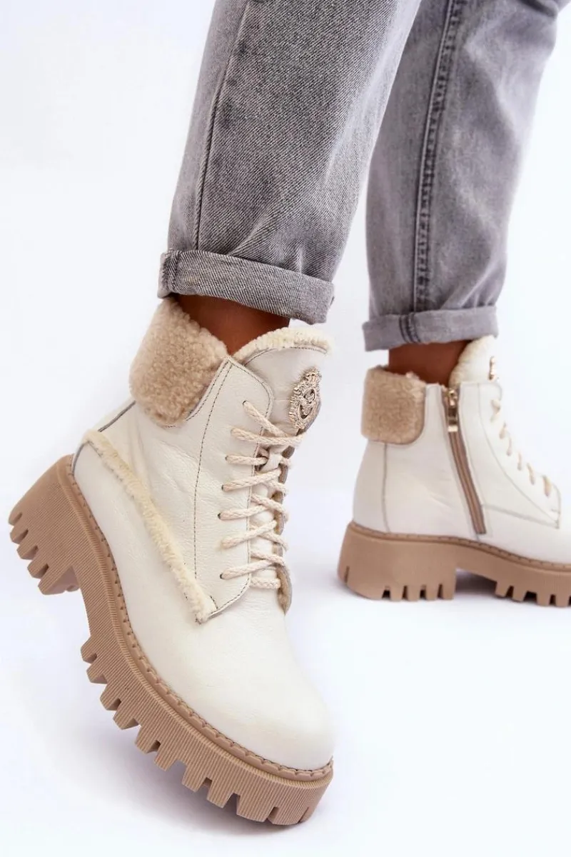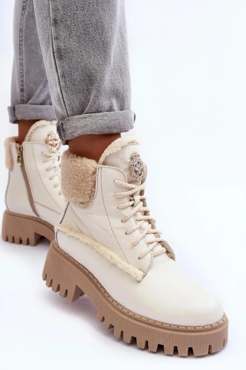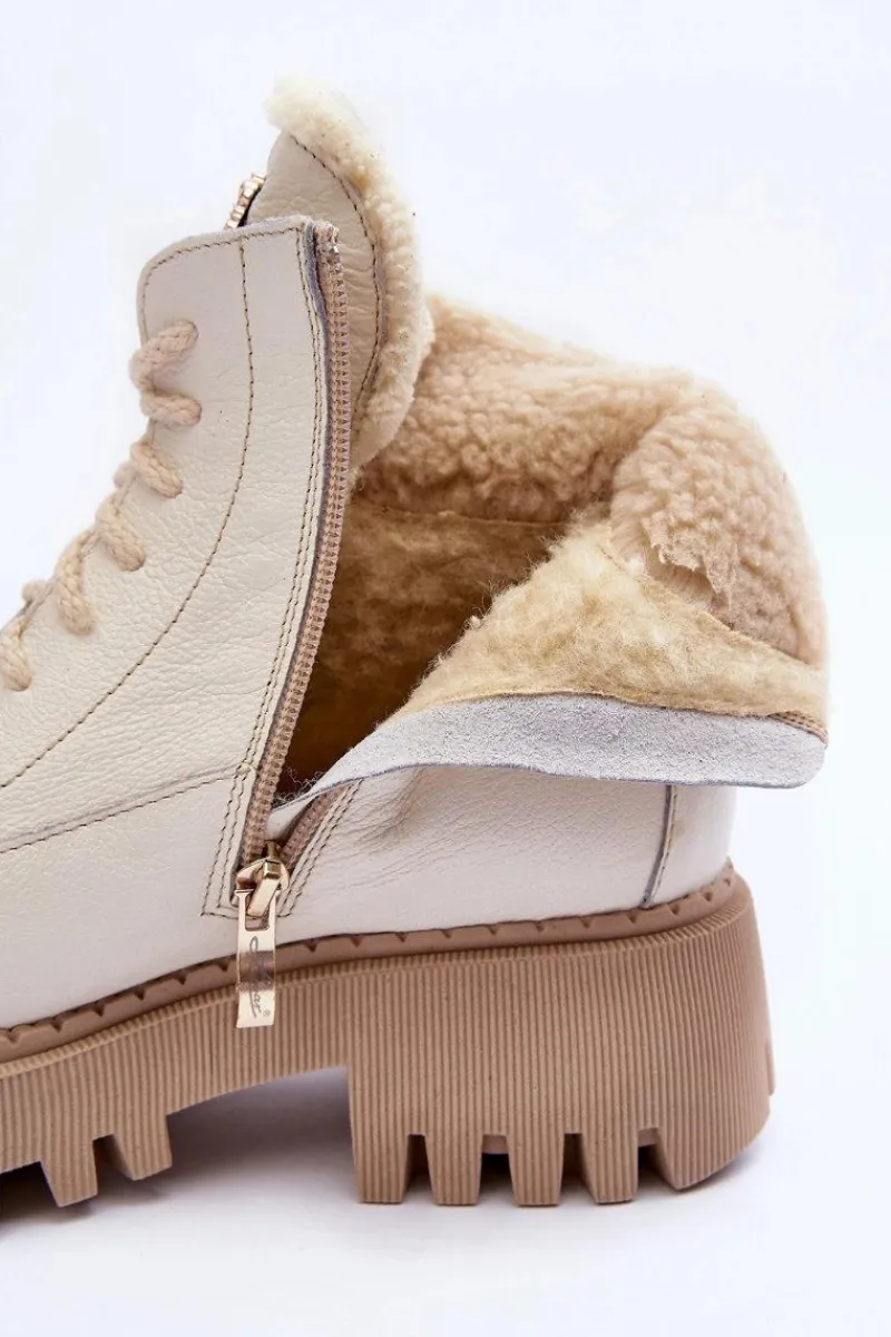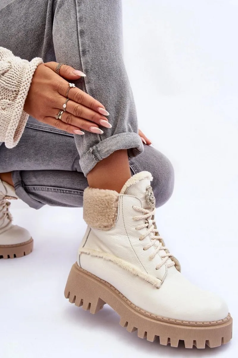 Botki w formie traperów zostały osadzone na masywnym obcasie. Podeszwa z bieżnikiem. Na języku znajduje się ozdobny element. Trapery wykonane zostały z wysokiej jakości naturalnych skór. Wewnątrz botki ocieplono wełną. Model ten posiada sznurowanie oraz suwak z boku cholewki. Dodatkowo zapiętek jest usztywniany. Przy wyborze rozmiaru prosimy sugerować się tabelą rozmiarów.