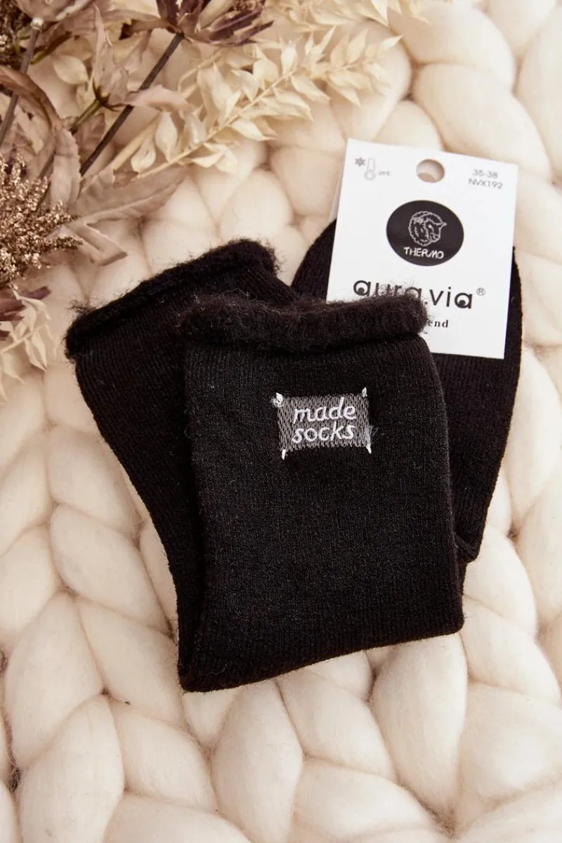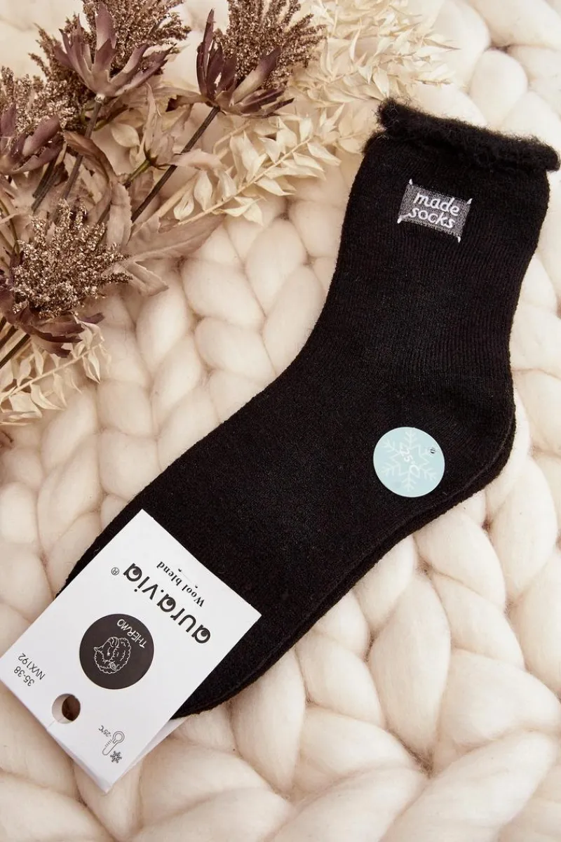 Ciepłe skarpety damskie idealne na mroźne dni. Model z małą naszywką. Lekki ściągacz sprawi, że będą idealnie dopasowane do tęgości nogi. Koniecznie powinnaś je mieć!