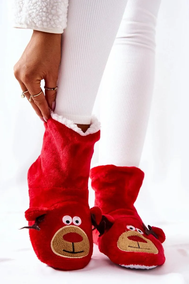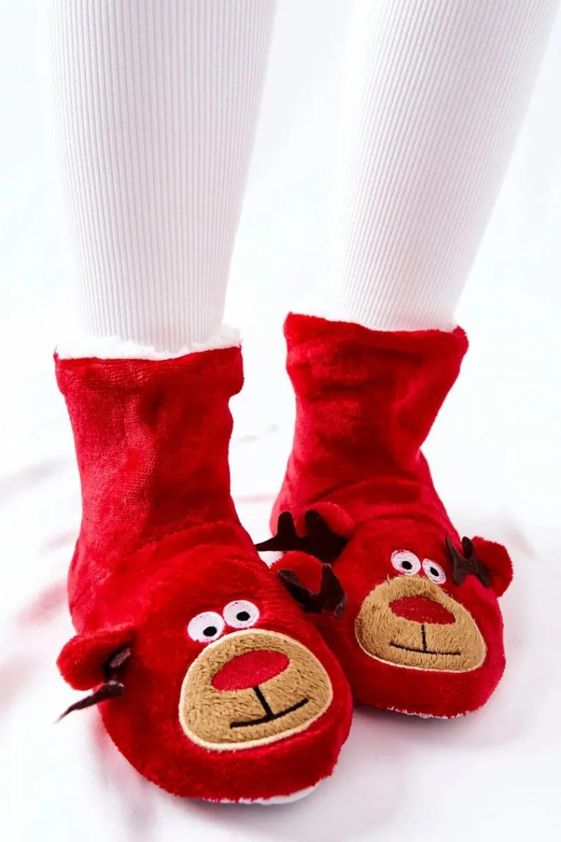 Discount Aura.via Świąteczne Papcie Ocieplane Renifer Czerwone