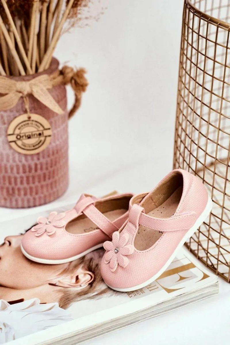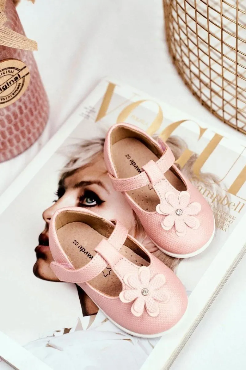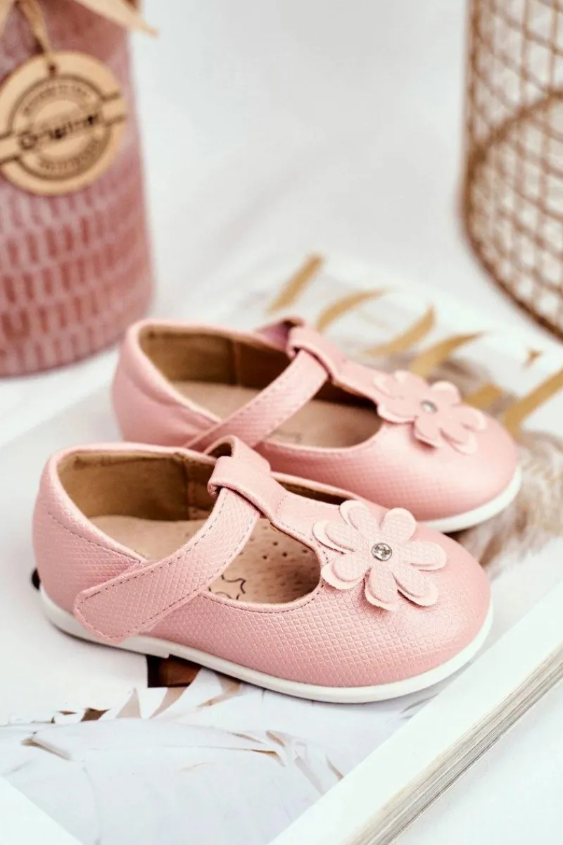 Discount Balerinki Dziecięce na Rzepy Kwiatuszek Różowe Antrela Dzieci Balerinki Dziecięce