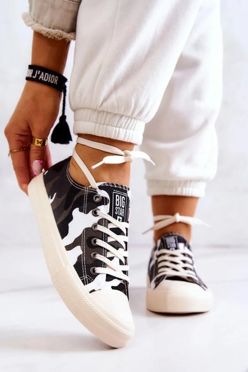 Discount Big Star Shoes Damskie Materiałowe Trampki Moro BIG STAR JJ274237 Biało-Szare