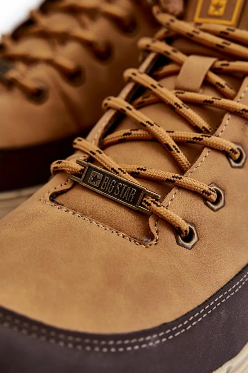 Modne botki męskie od polskiej marki Big Star z cholewką za kostkę. Wykonane z wysokiej jakości eko skóry. Model ten posiada solidne sznurowanie. Wkładka Memory Foam System zapamiętuje kształt stopy, zapewnia doskonałe dopasowanie oraz absorbuje wstrząsy. Dodatkowo jest odporna na odkształcenia oraz pozwala na odparowywanie wilgoci i regulacje temperatury. Dodatkowo usztywniany zapiętek zapewni stabilizację stopy. Przy wyborze rozmiaru prosimy sugerować się tabelą rozmiarów.