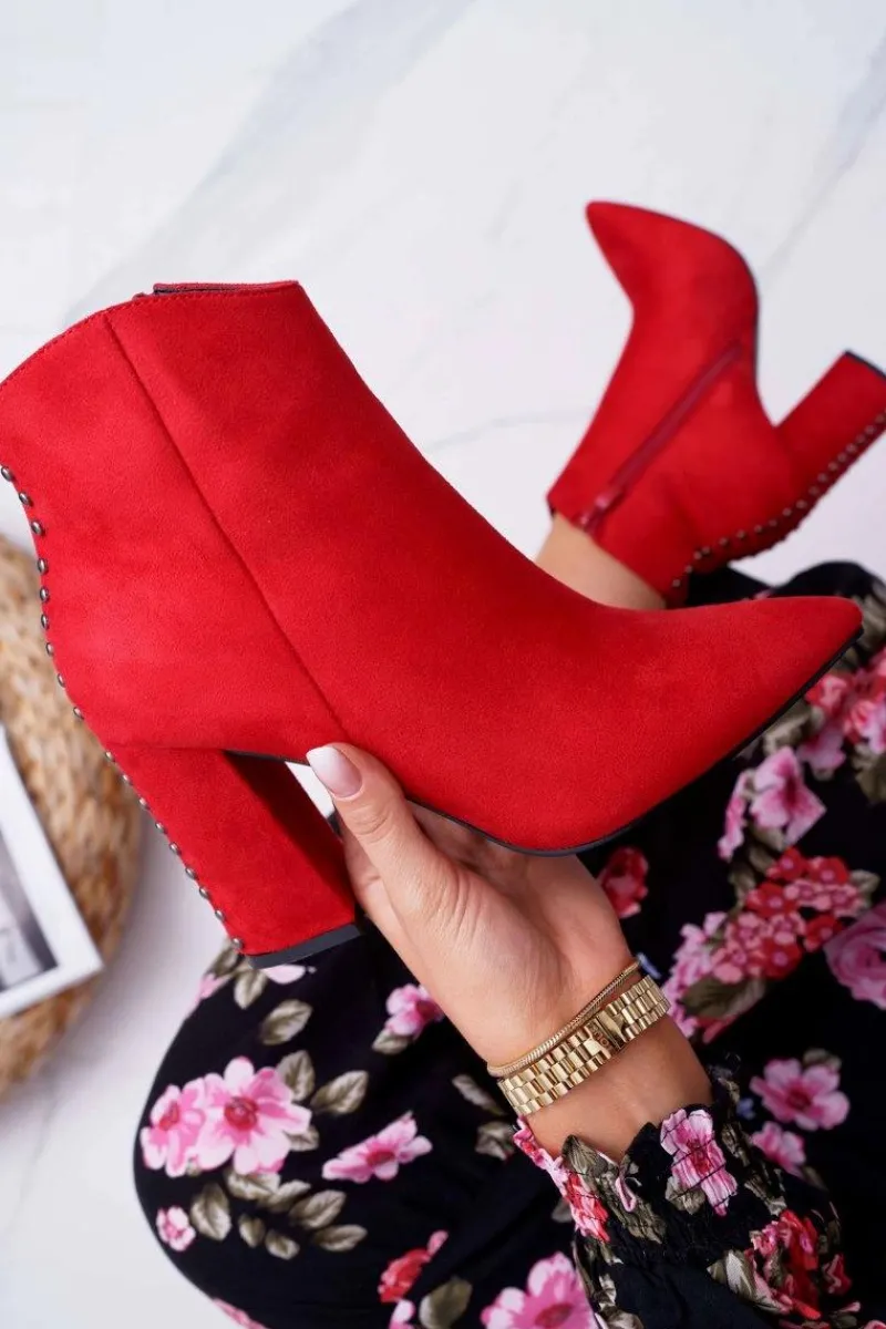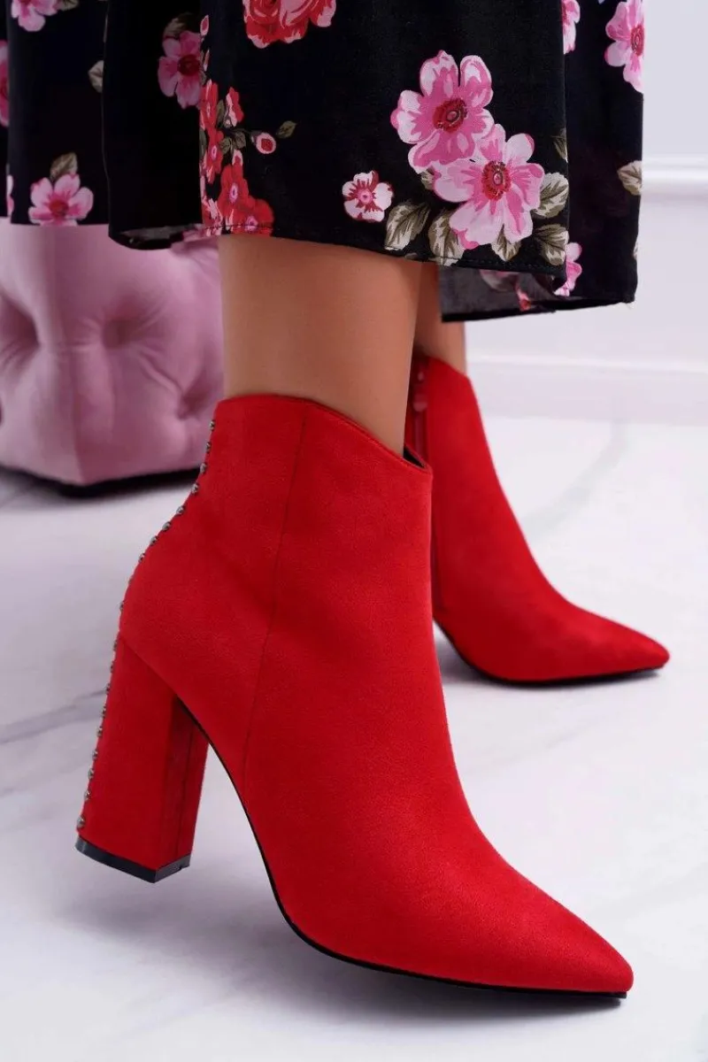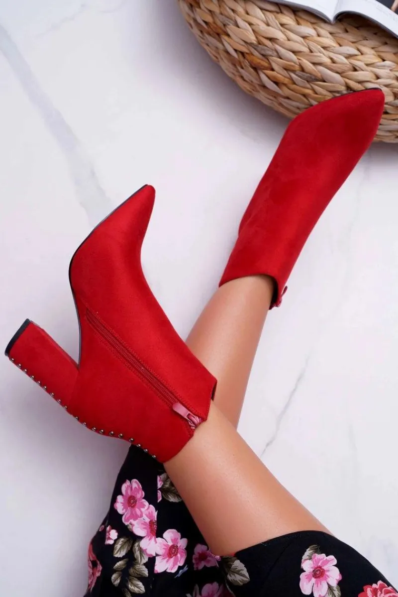 Discount Botki Damskie Na Obcasie Z Nitami W Szpic Czerwone Snack Damskie Botki Na Słupku|Botki Zimowe Damskie