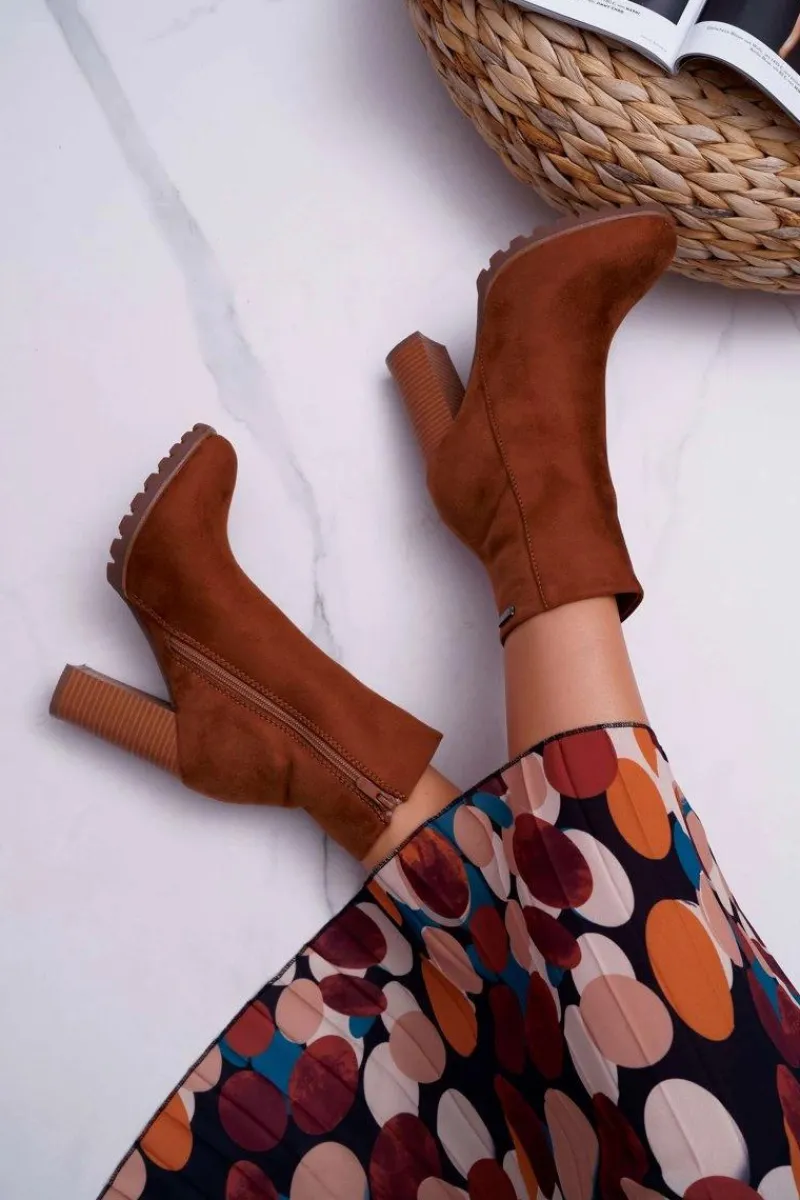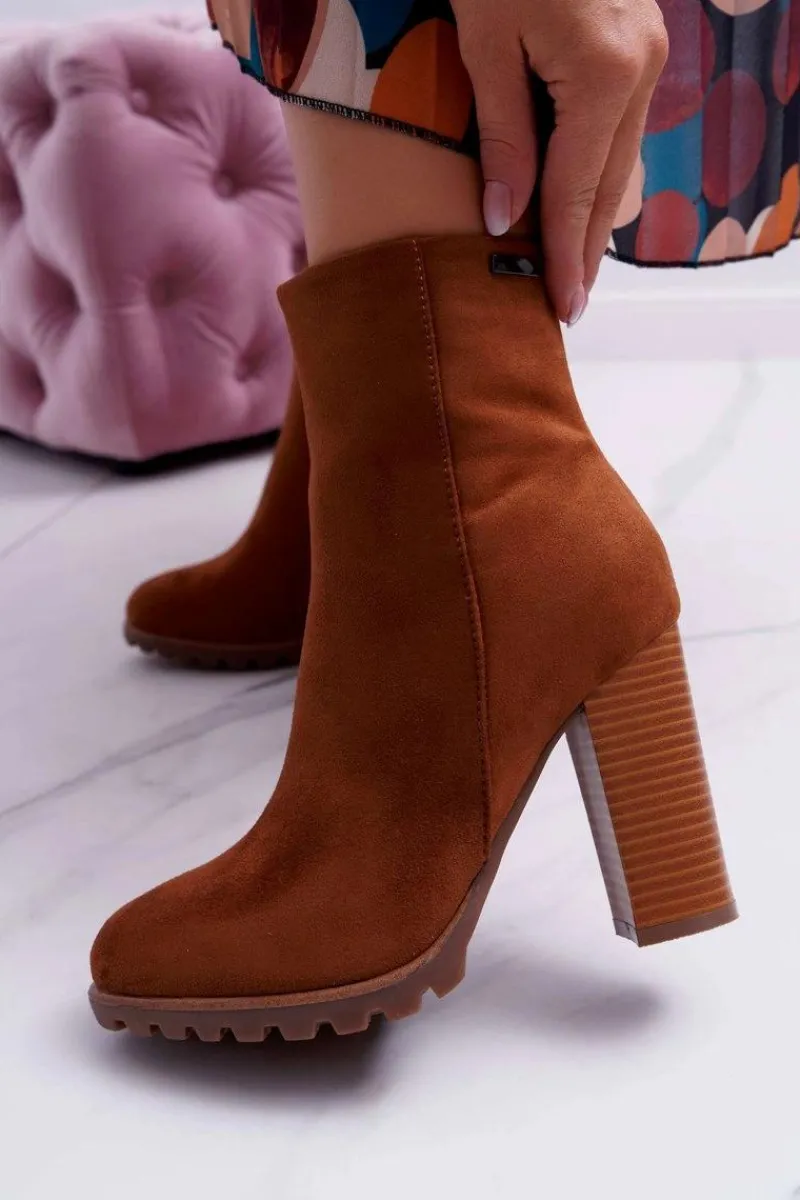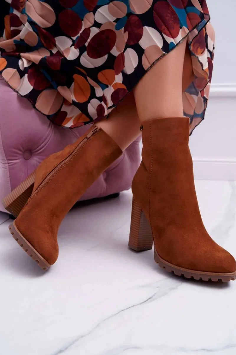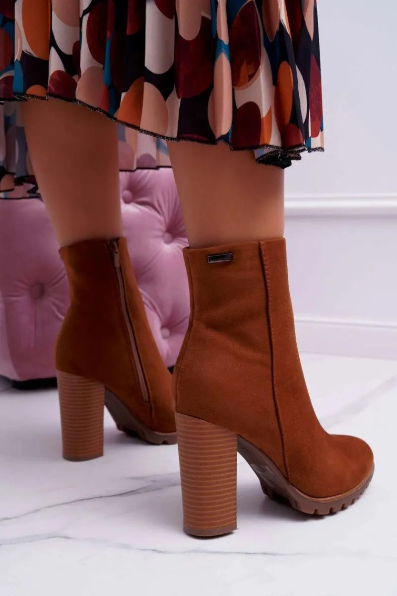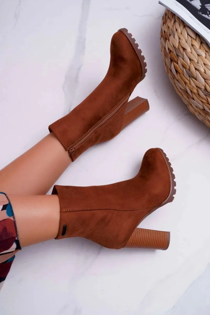 Discount Botki Damskie na Słupku Zamszowe Camel Cadillac Damskie Botki Na Słupku|Brązowe I Beżowe Botki