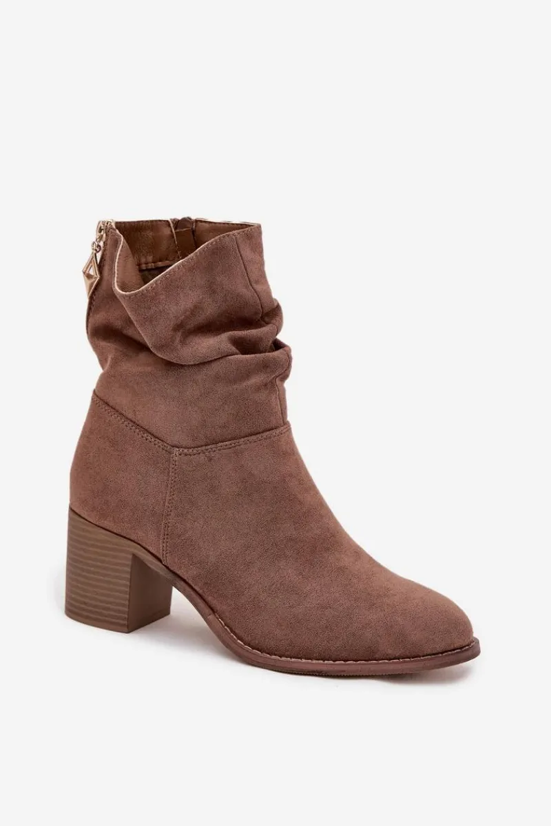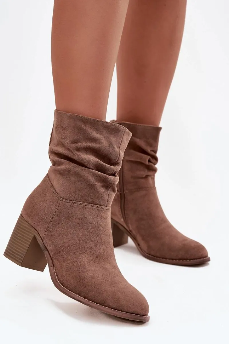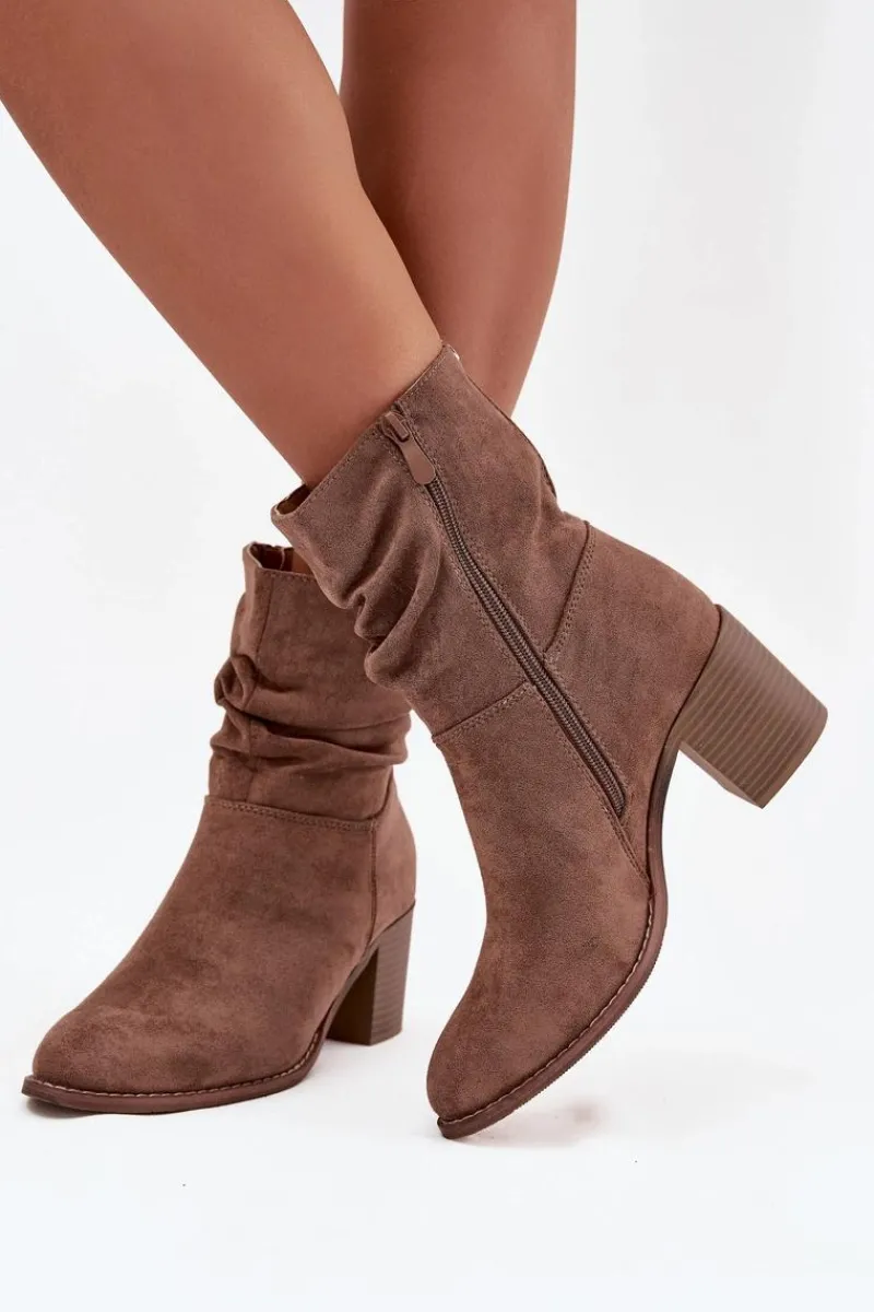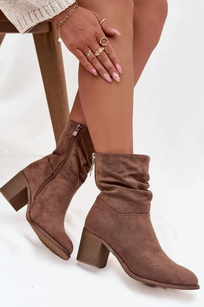 Botki damskie z eko zamszu od marki S.Barski to propozycja, która doskonale sprawdzi się w sezonie jesienno-zimowym. Wykonane z miękkiego, przyjemnego w dotyku materiału, prezentują się bardzo kobieco i modnie. Model został osadzony na stabilnym obcasie typu słupek, który subtelnie wysmukla sylwetkę, a jednocześnie zapewnia wygodę i komfort noszenia nawet przez dłuższy czas. Praktyczne zapięcie na zamek ułatwia zakładanie i zdejmowanie butów, co czyni je funkcjonalnym wyborem na co dzień. Charakterystycznym elementem jest marszczona cholewka, która dodaje całości oryginalności. To model, który doskonale uzupełni zarówno codzienne stylizacje ze spodniami czy legginsami, jak i bardziej kobiece zestawy z sukienką czy spódnicą. Przy wyborze rozmiaru prosimy sugerować się tabelą rozmiarów.