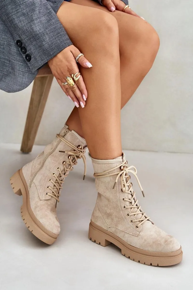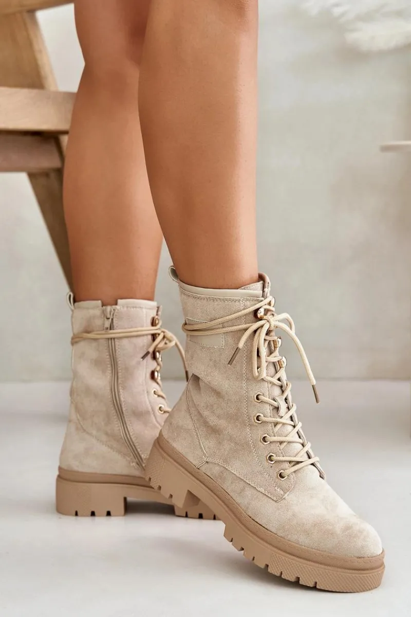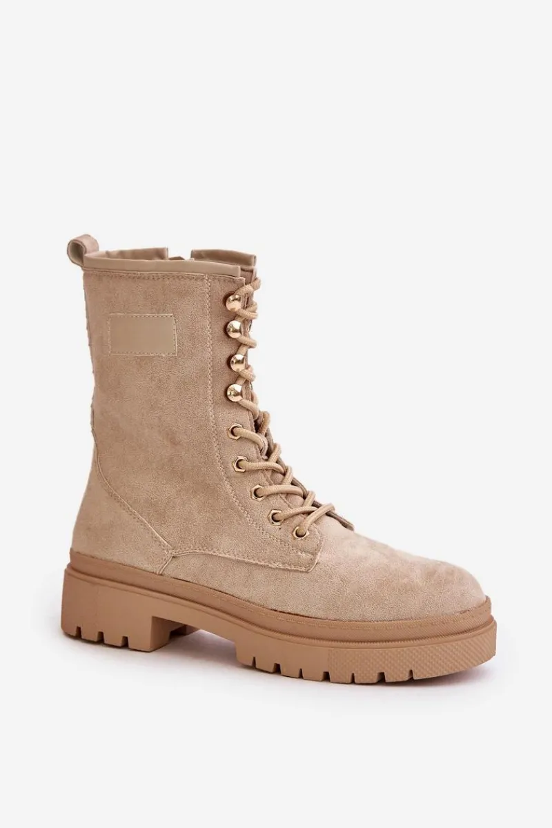 Workery damskie wykonane z eko zamszu. Osadzone na płaskim obcasie. Noski zaokrąglone. Zapinane na zamek oraz sznurowane. Klasyczny, modny fason, który dopełni wiele jesiennych stylizacji! Przy wyborze rozmiaru prosimy sugerować się tabelą rozmiarów.