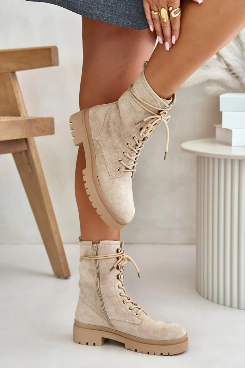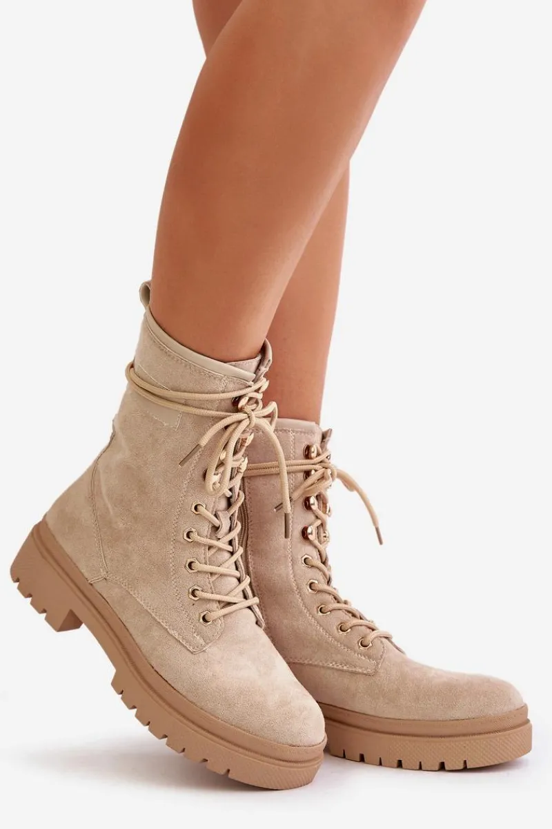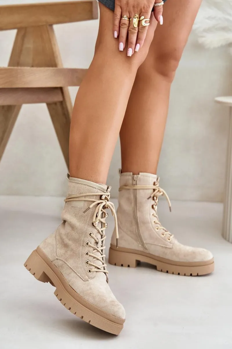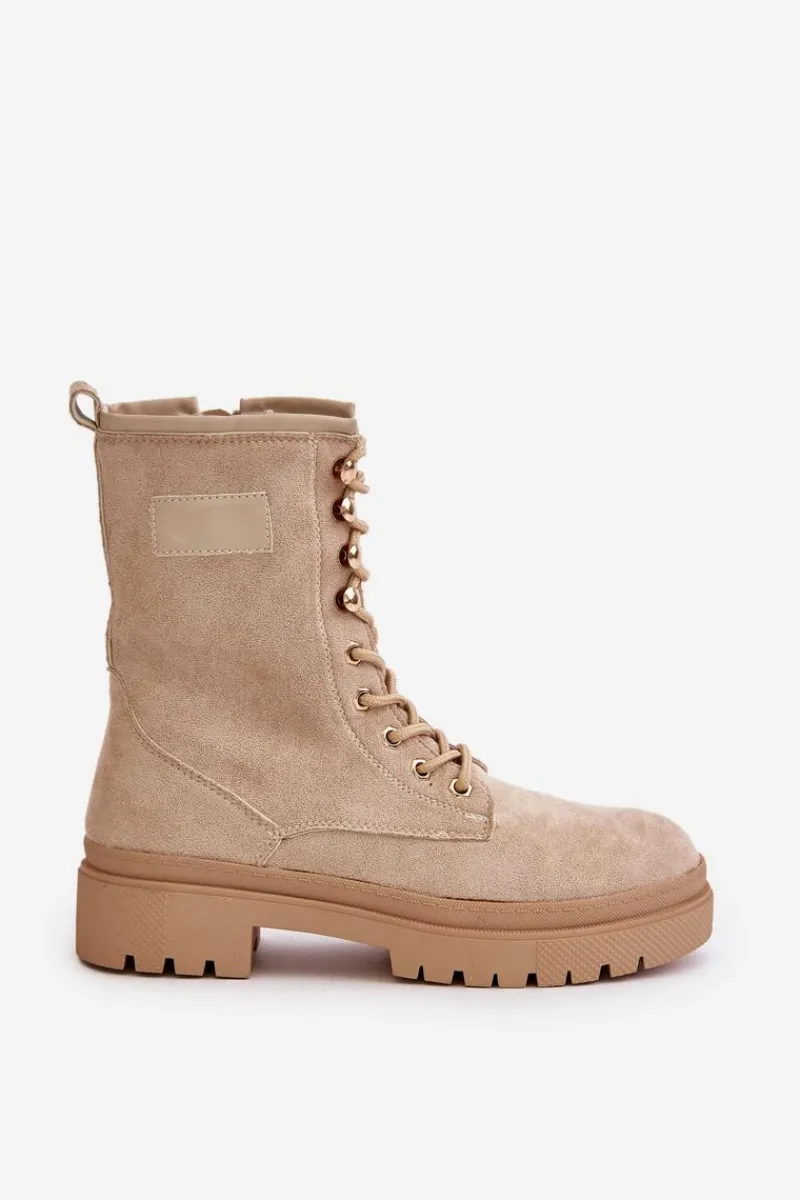 Workery damskie wykonane z eko zamszu. Osadzone na płaskim obcasie. Noski zaokrąglone. Zapinane na zamek oraz sznurowane. Klasyczny, modny fason, który dopełni wiele jesiennych stylizacji! Przy wyborze rozmiaru prosimy sugerować się tabelą rozmiarów.